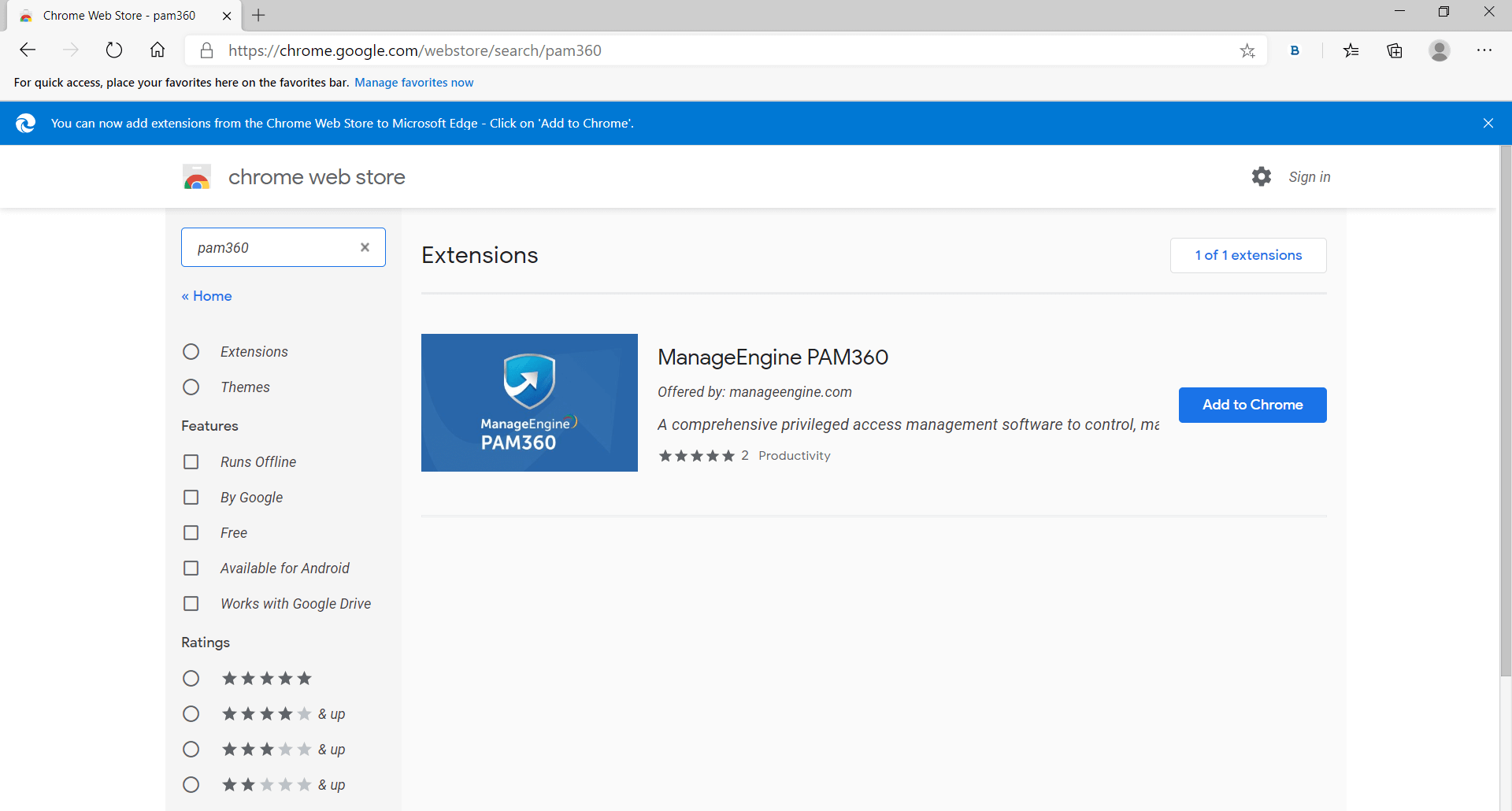 - 安装后,您将在浏览器中的地址栏看到 PAM360 的图标。单击该图标并按提示输入PAM360的主机的名称,以及连接端口。