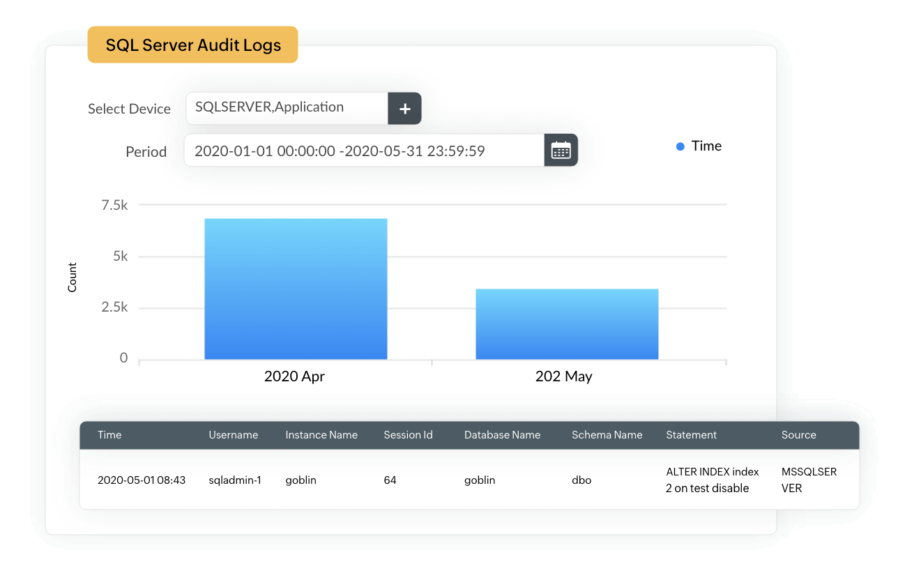 Microsoft SQL服务器和其他数据库上的独家审计跟踪提供了对表、视图、程序、触发器、模式和数据的添加、删除或修改的见解。他们还以图形报表的形式直观地呈现数据,以帮助管理员在需要时进行快速的取证分析。