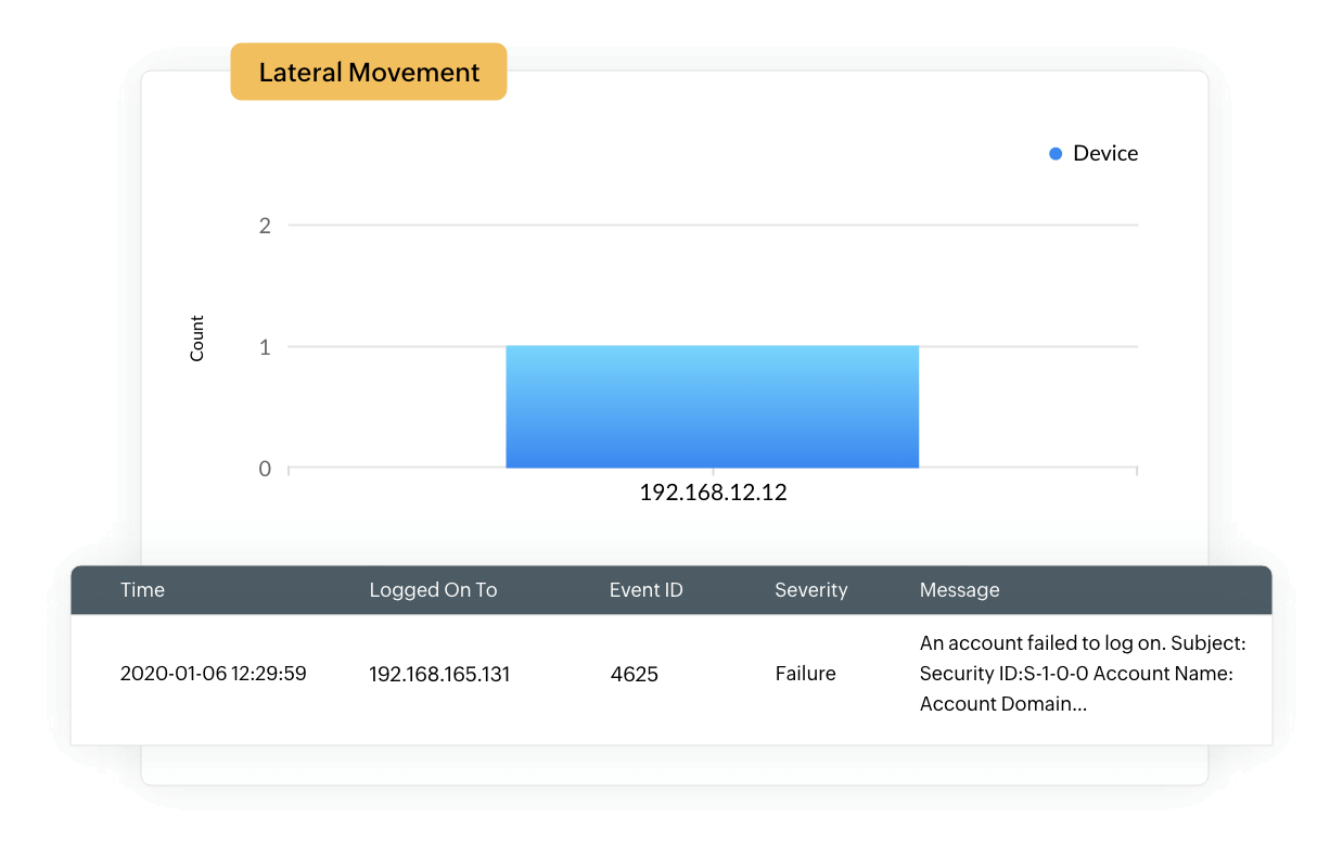 EventLog Analyzer的强大关联引擎旨在根据预定义的相关规则检测网络中可疑活动的迹象。每个规则的事件时间表报表都详细介绍了导致解决方案触发相关告警的事件序列。这将让您清楚地了解攻击的来源,以及攻击者是如何通过网络进行的。