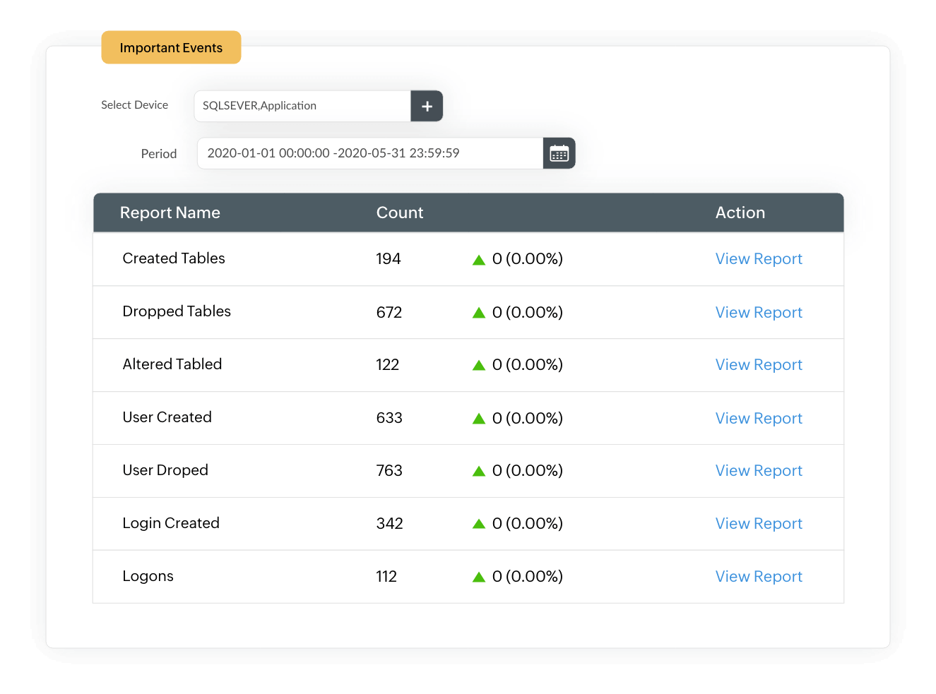如果攻击者可以不受限制地访问您的SQL severs上的机密数据,他们可以通过更改、添加和删除条目或删除整个表来篡改现有数据。使用EventLog Analyzer,您可以审核DDL和DML活动,以跟踪数据库中的功能和结构级变化。
