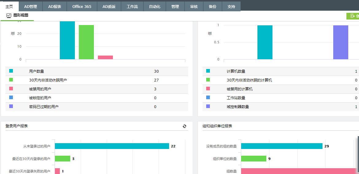 二、实现IT管理员需要查看AD报表来帮助其管理活动目录。