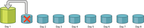 假定您将备份保留周期设置为7天,那么到第8天,具有增量备份的天数将超出保留策略中设置的值。