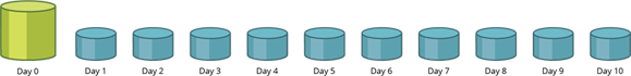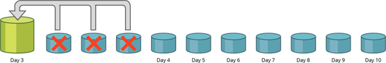 如上图所示,具有增量备份的天数大于保留策略中设置的值。在此情况下,过去7天进行的增量备份将保留,所有先前增量备份将添加至完整备份。