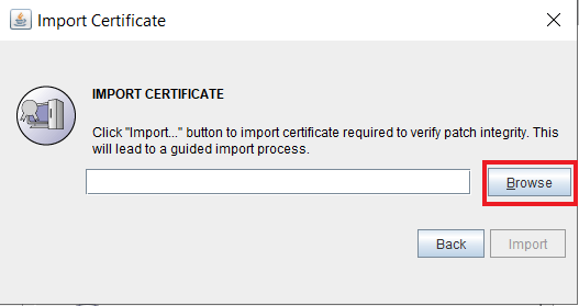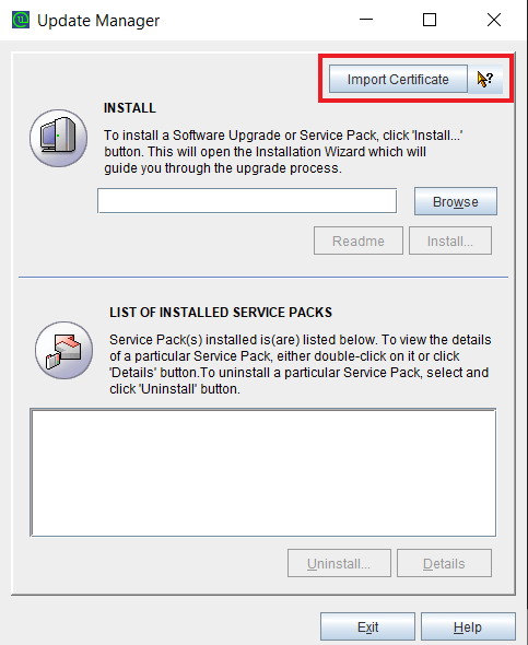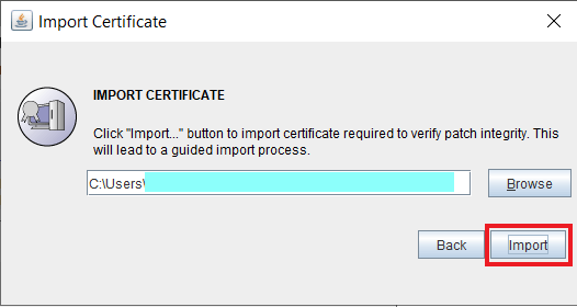 2Once downloaded, click Import Certificate in the Update Manager tool to open the Import Certificate wizard.