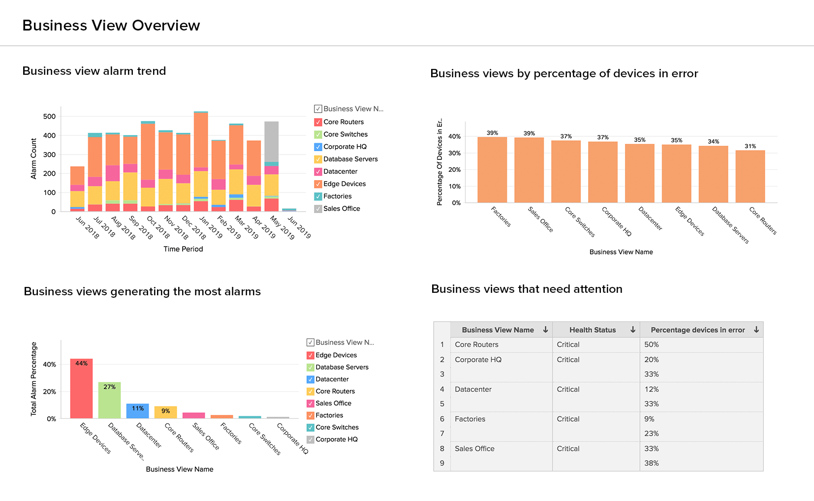 当网络中断时,业务将陷入停顿。借助实时可用性报表,您可以直观地跟踪造成交换机中断,路由器,服务器或SNMP的设备导致服务中断的情况,并轻松对其进行修复以减少停机时间并更快地恢复服务。