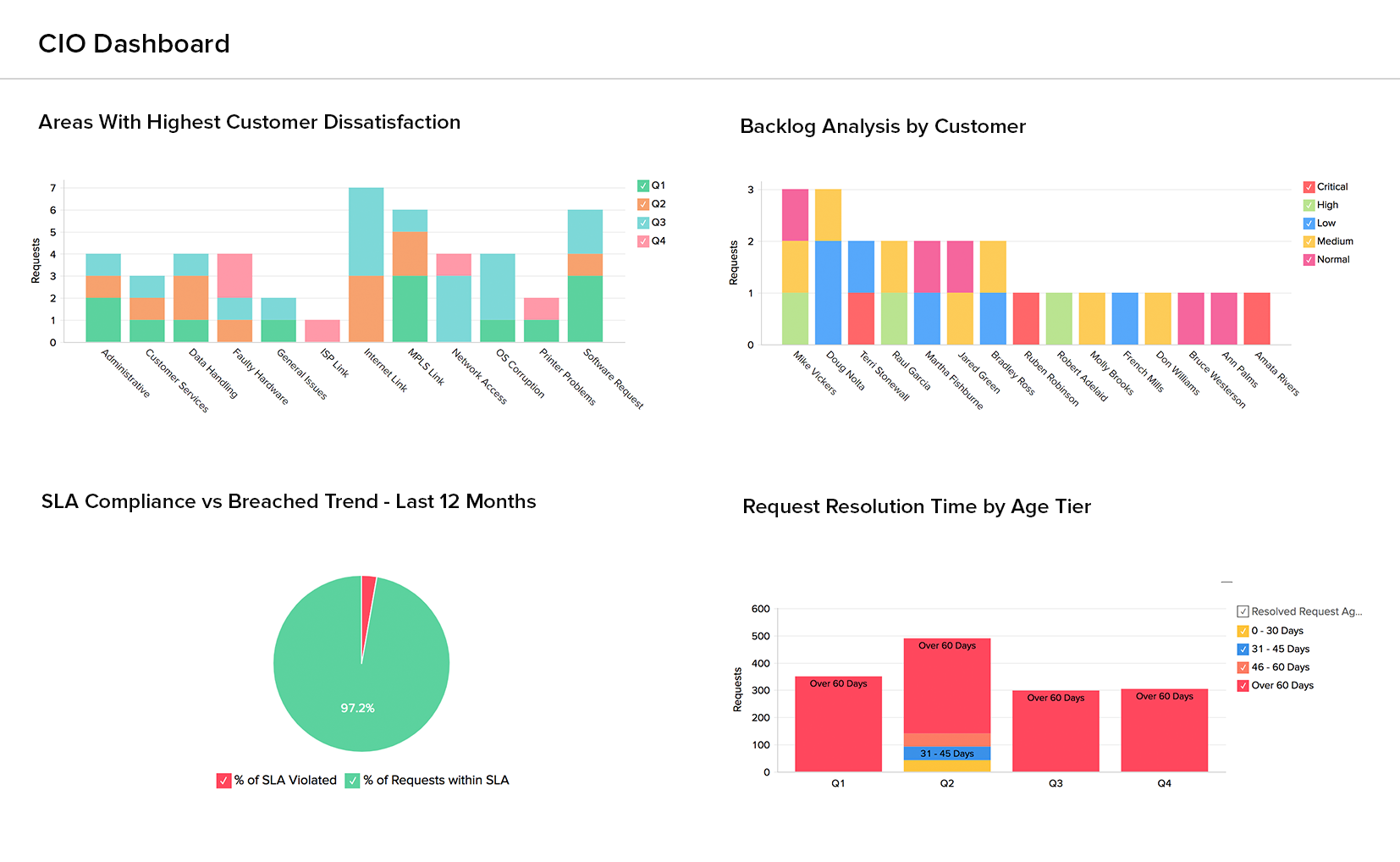 作为服务台经理,您需要有效地主动管理您的支持队列,分析传入的故障单趋势,并最大程度地减少由于任何SLA影响而造成的损失。