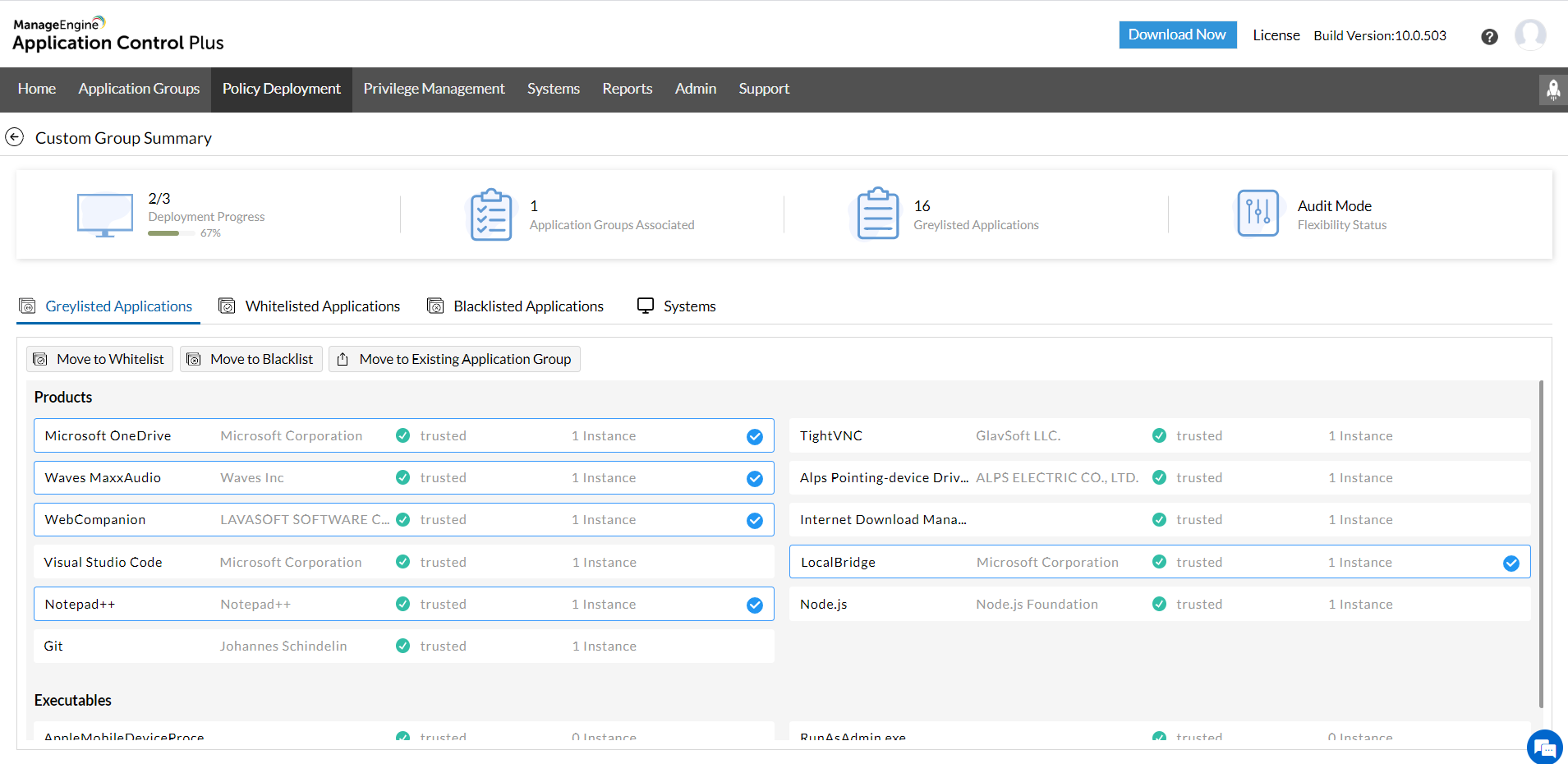 借助诸如审计模式和严格模式之类的灵活性模式,管理员可以预览其网络运行情况(如果他们选择运行当前在灰名单中的应用)。这使他们能够在执行策略以将灰名单的应用添加到黑名单之前做出明智的决定。