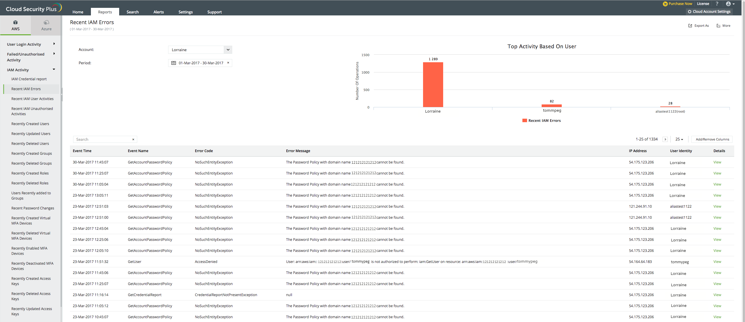 - IAM错误报表:显示不成功的IAM事件,包括错误代码,错误类型和错误消息的详细信息。