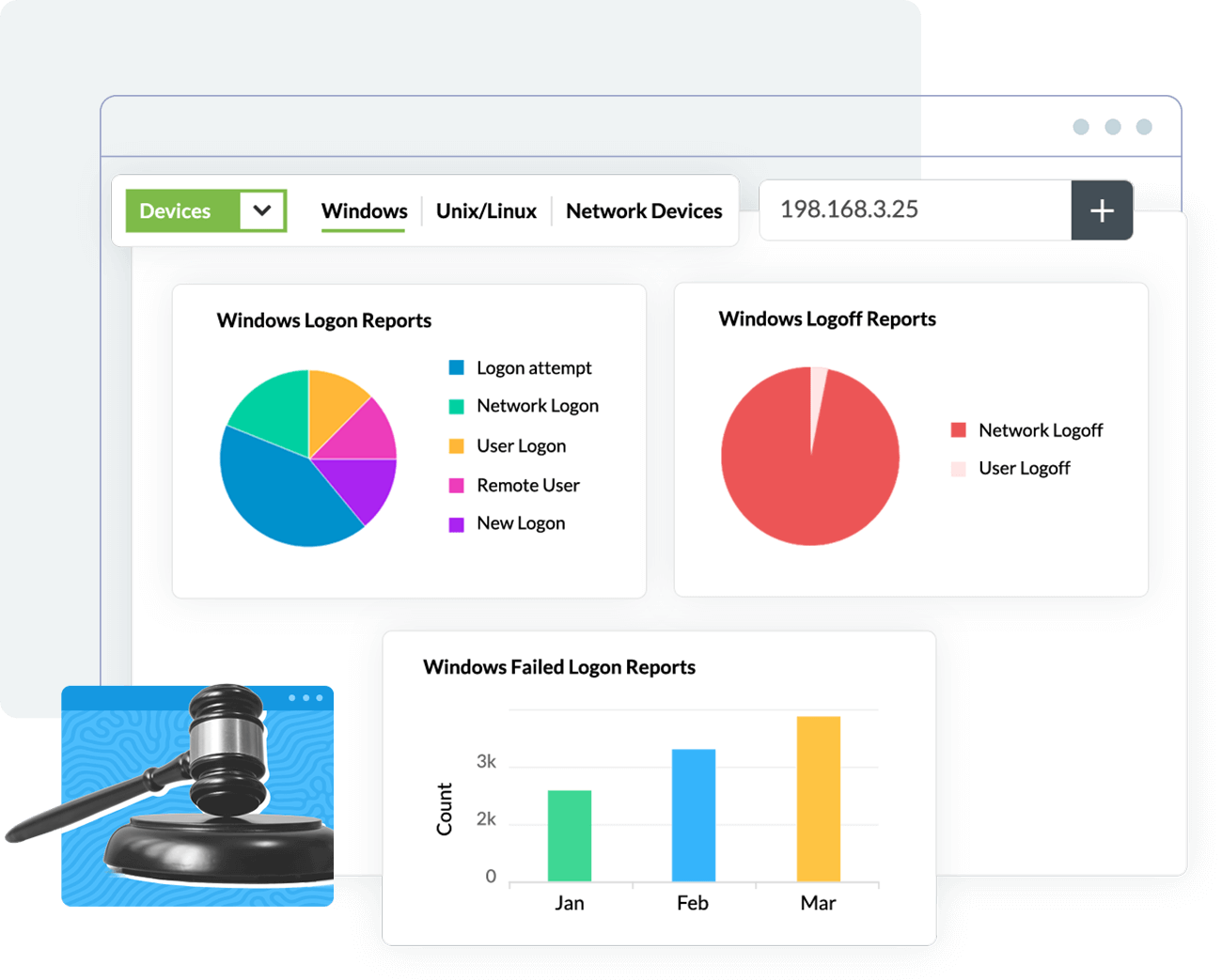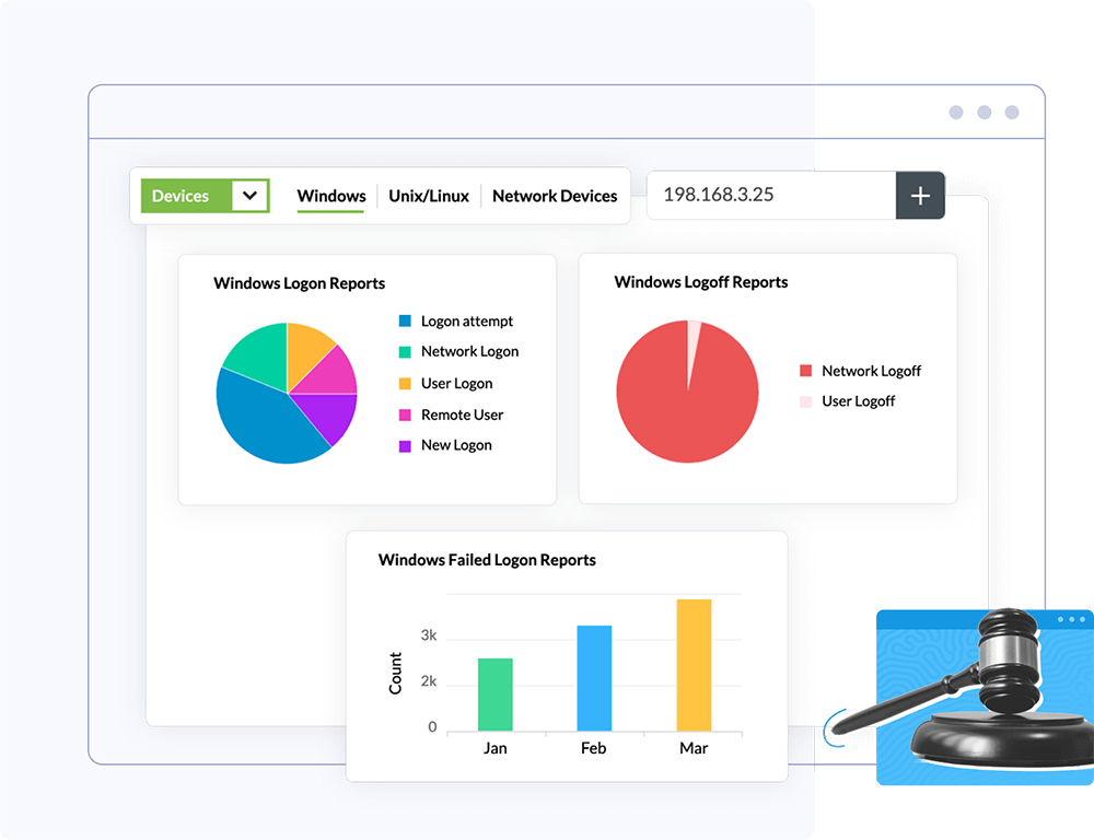 Meet regulatory compliance requirements for regulatory mandates such as PCI DSS, FISMA, GLBA, SOX, HIPAA, ISO 27001, and more using audit-ready report templates.