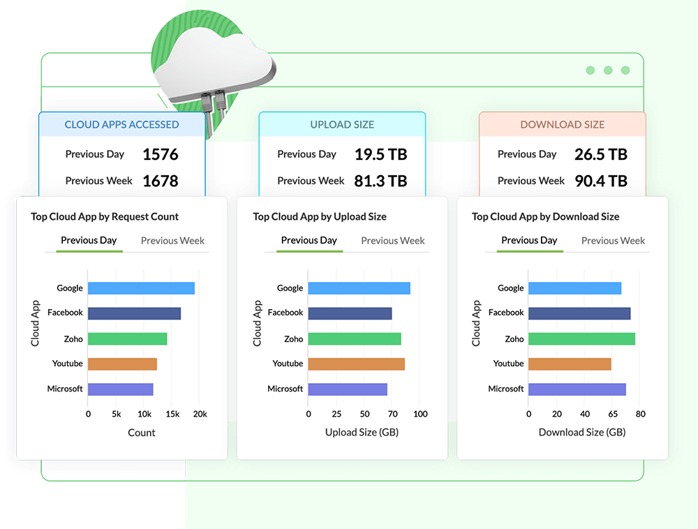 Track your cloud app usage, get application-wise and user-wise insights, track unsanctioned app usage, and ban applications with our built-in CASB.