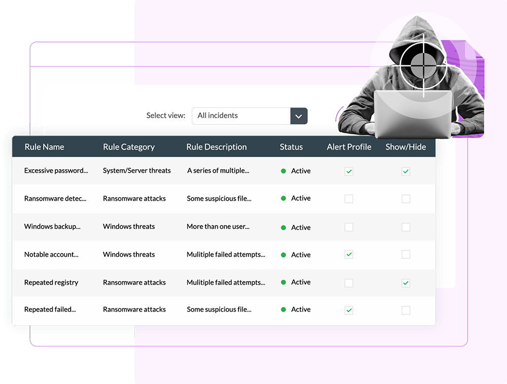 Don't let suspicious activities go unnoticed. Log360 Cloud lets you set up priority-based alerts for security events customized to your environment and address potential threats at the earliest.