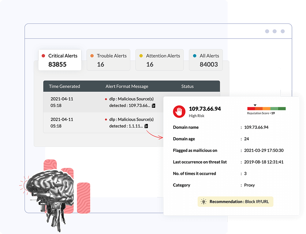 Log360 Cloud comes with a fully configured threat intelligence module that auto-updates threat data from trusted open-source and commercial threat feeds. Get notified whenever a malicious source interacts with your IT environment.