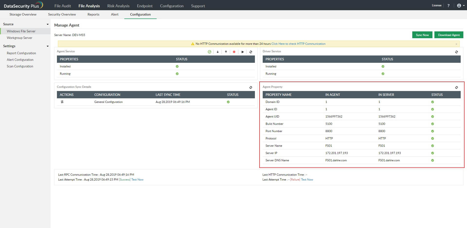 DataSecurity Plus代理实时审核Windows文件服务器,并通过配置的HTTP(S)端口将收集到的事件数据转发到DataSecurity Plus服务器。