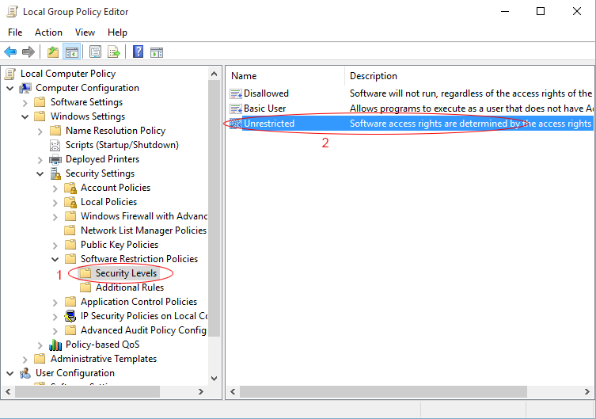 点击 “软件限制策略”