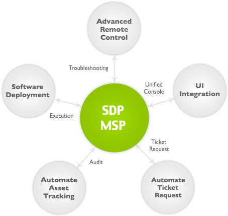 Desktop Central MSP可以很容易地与基于ITIL架构的帮助台应用程序, -ServiceDesk Plus MSP集成提供一个集成的帮助台和桌面管理功能。