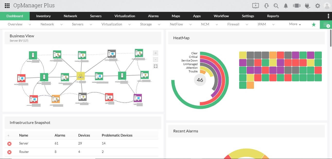 启用对关键网络组件(如服务器、路由器、存储、应用程序、防火墙、接口、交换机端口、设备配置和网络带宽)的主动网络监控。利用单个Web控制台,允许您通过其多样化的内置显示器全面跟踪您的IT。