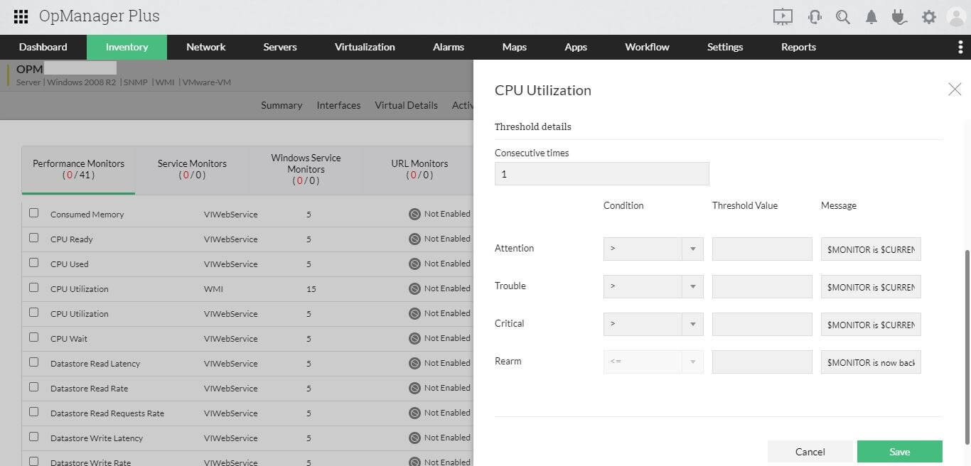 使用OpManager Plus的多级阈值,只需一目了然地了解网络的关键组件及其性能。当您的设备出现哪怕是最轻微的麻烦迹象时,都会立即收到告警。这有助于您有效地解决级联网络问题,这些问题可能会使您的整个网络瘫痪。