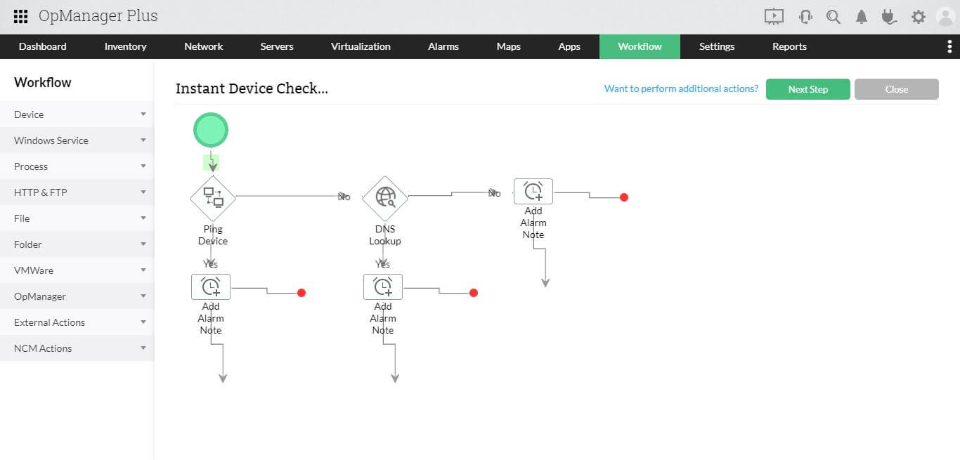使用OpManager Plus的拖放自动化工作流程构建器,通过降低成本、时间和资源,使ITOM更有效率。部署OpManager Plus的有效工作流程,通过书籍任务和L1和L2故障管理活动实现单调的自动化。