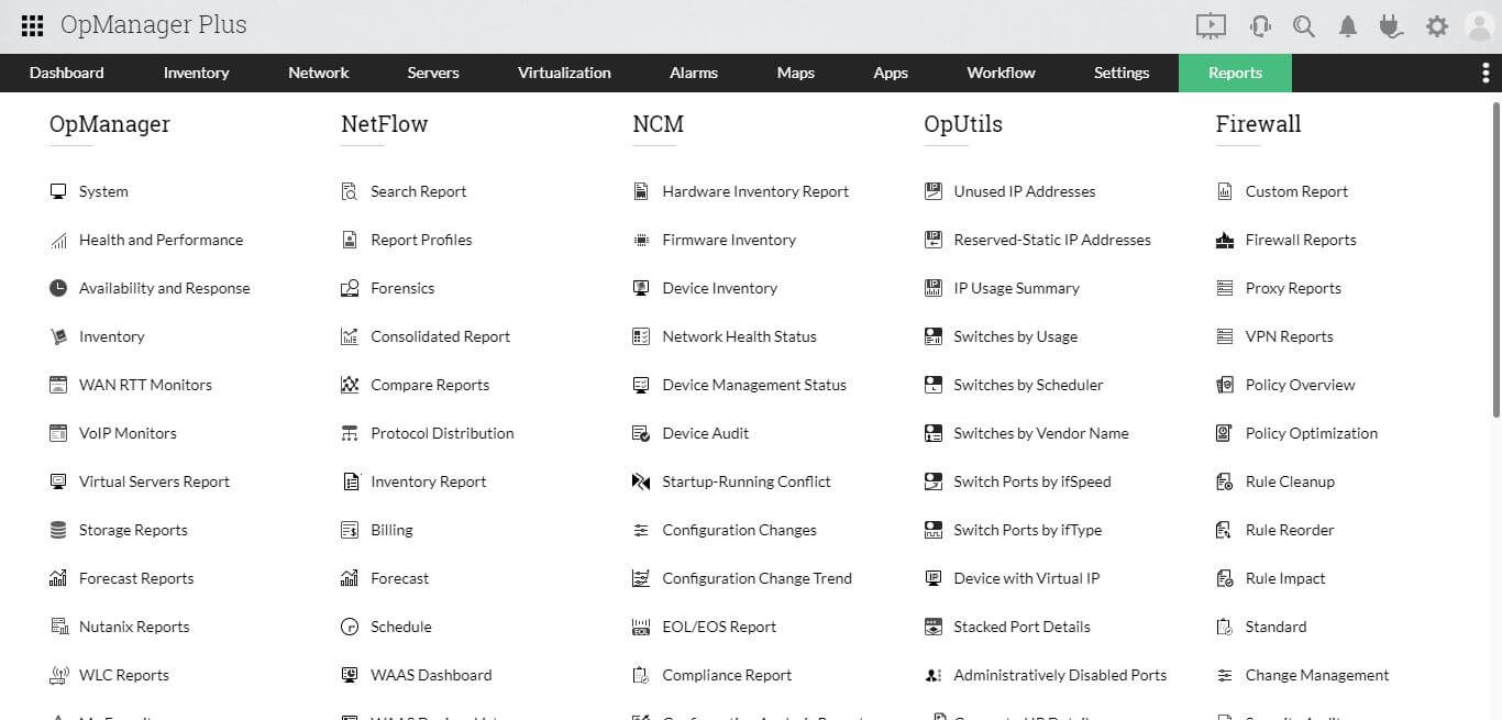 OpManager Plus提供了有关网络性能的全面展望,使您能够更有效地分析IT基础架构性能。