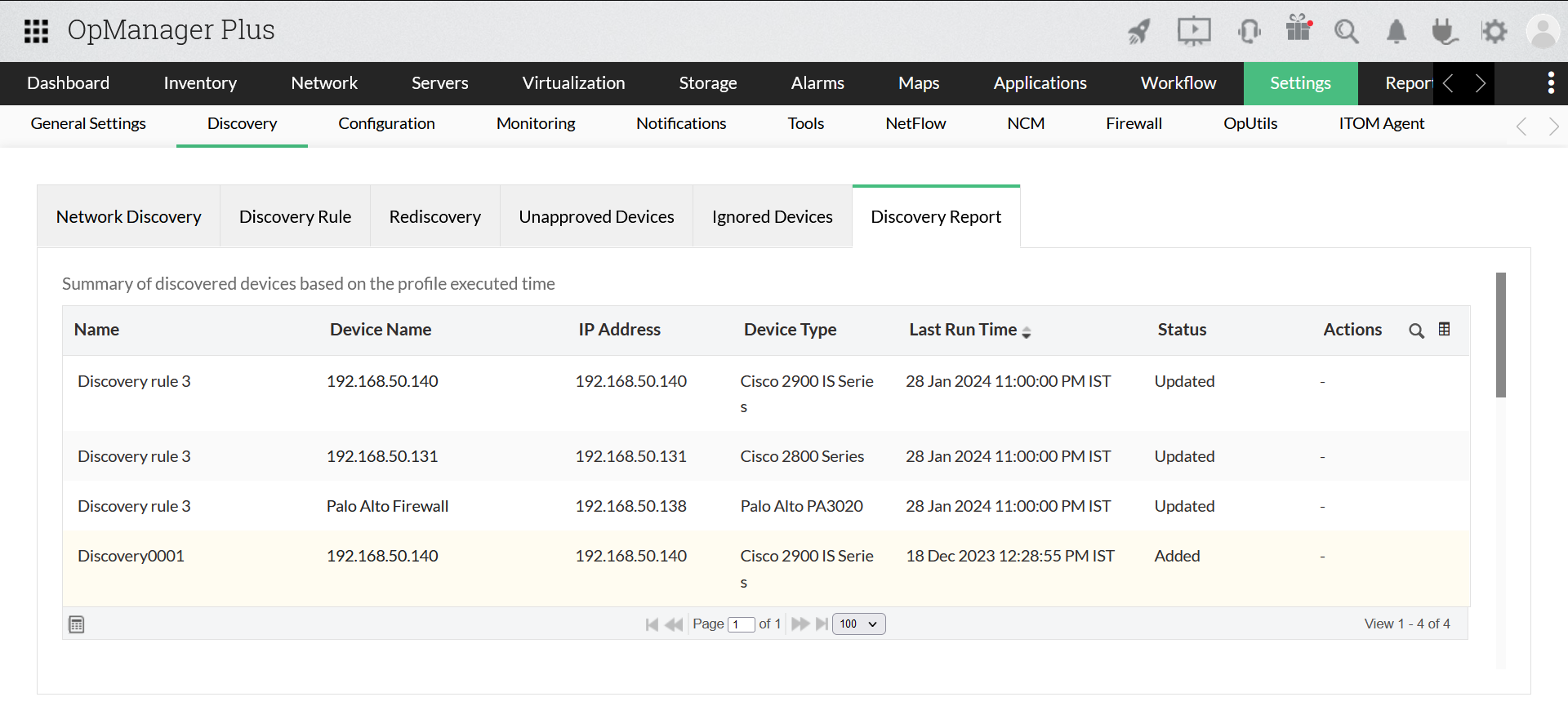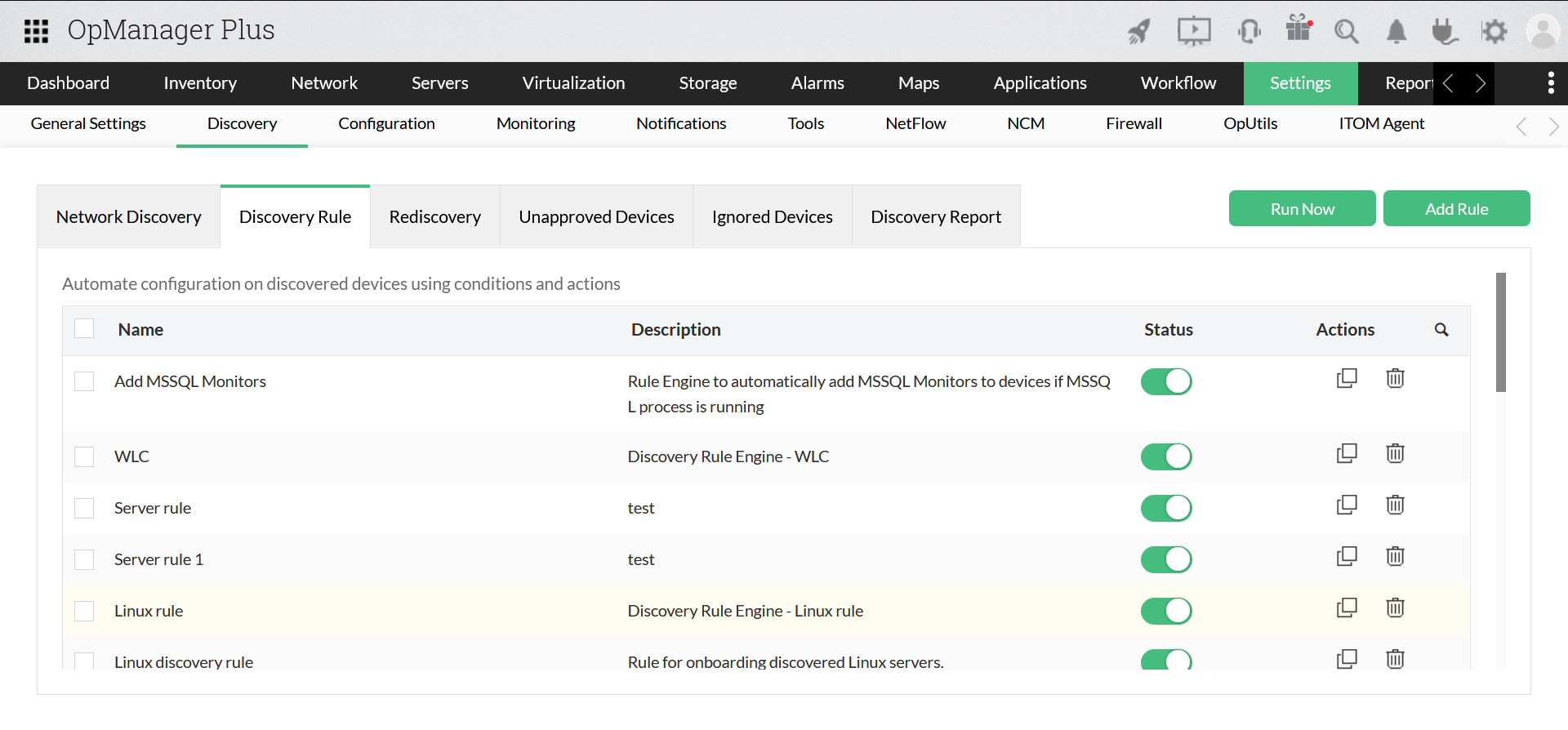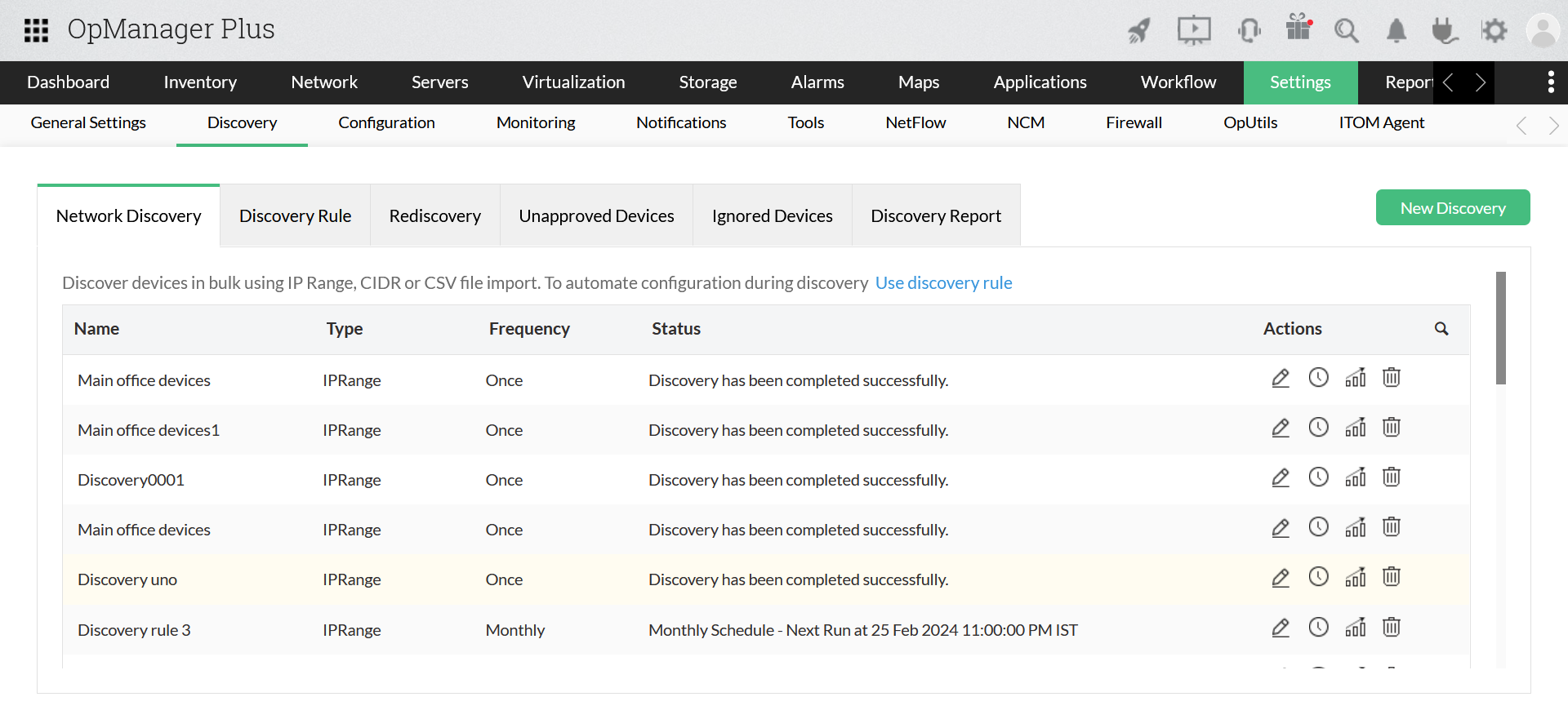 使用OpManager Plus灵活和整体的网络发现、重新发现和映射功能实现无缝网络发现。OpManager Plus专为管理最复杂的IT基础架构而构建,可在设置后几分钟内增强对受监控组件的可见性。