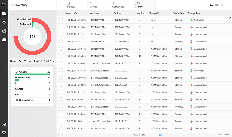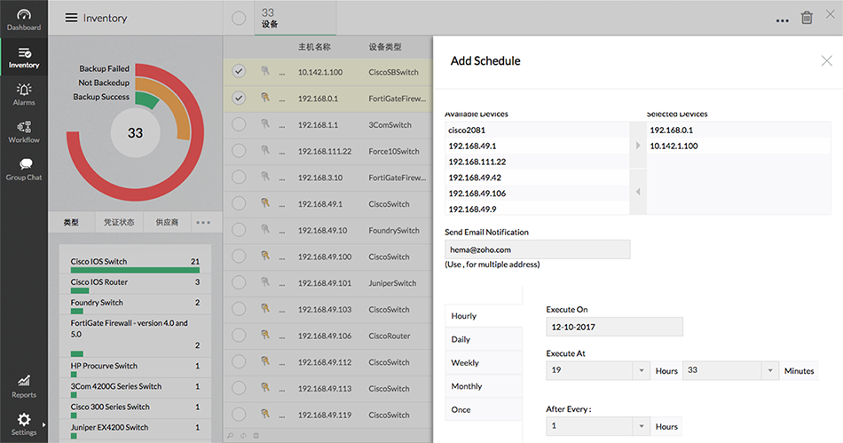 OpManager Plus为交换机、路由器、防火墙和其他网络设备提供配置和合规性管理(NCCCM)解决方案。它有助于自动化并完全控制设备配置管理的整个生命周期。一些关键功能包括: