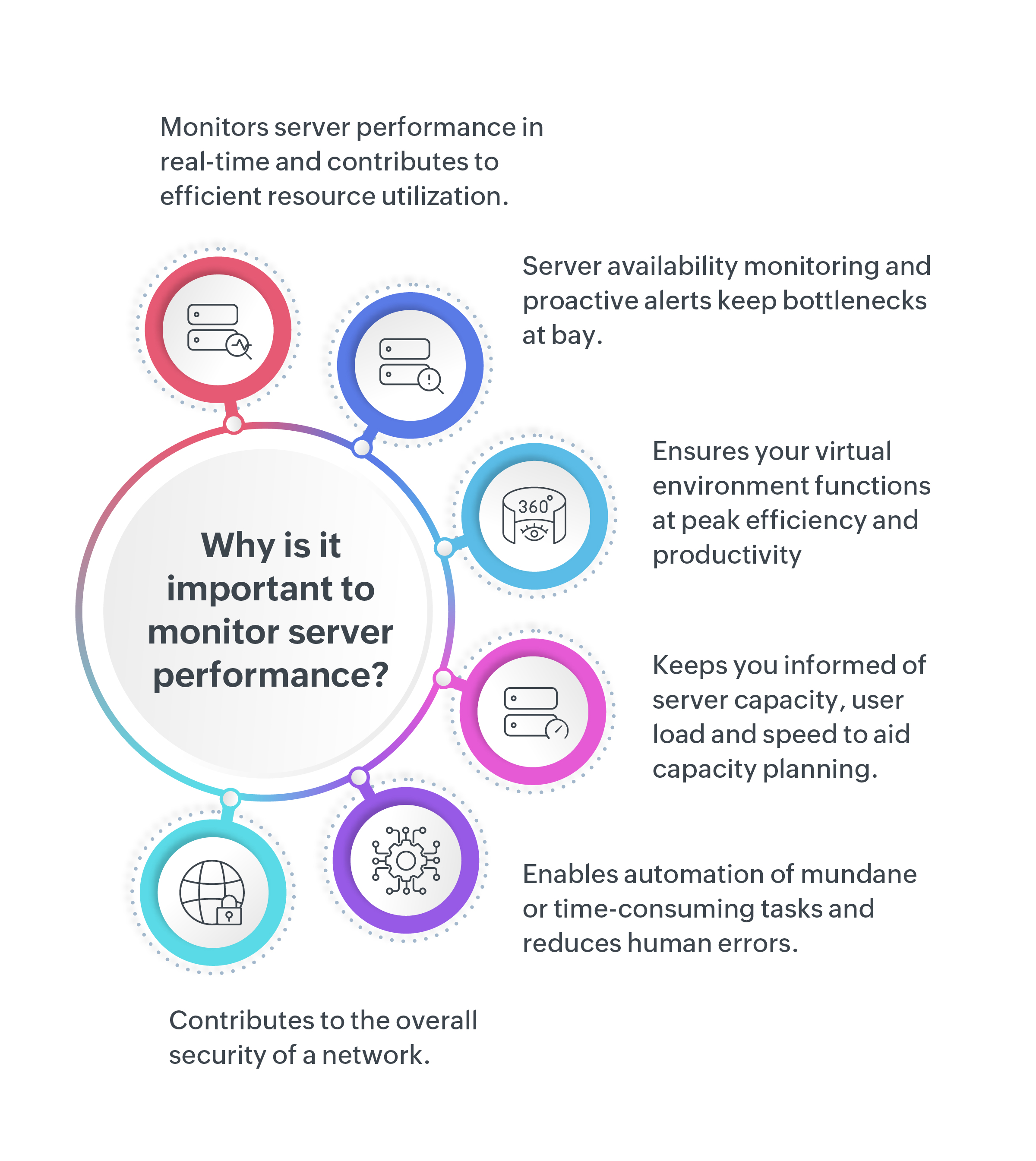 现代网络在物理和虚拟中都存在,但IT运营团队很难手动确保网络中的服务器在物理和虚拟环境中都能正常运行。实时服务器监控解决方案在出现网络错误、服务器停机或服务器性能出现任何瓶颈时提醒IT员工。这反过来又确保了性能问题在影响用户体验或导致数据丢失之前得到解决。
