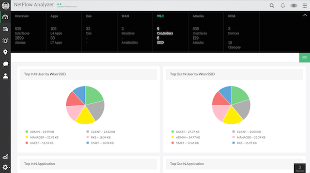 NetFlow Analyzer使网络监视更上一层楼,它将Cisco WLC添加到其设备列表中,以从无线设备获取实时流量报表。它还增强了各种功能,如IP组、接口组和告警配置文件。