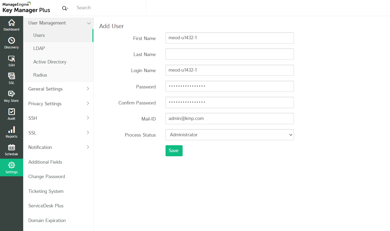 After integrating the RADIUS server with Key Manager Plus, you should manually add RADIUS users to KMP in order to enable them access to Key Manager Plus.