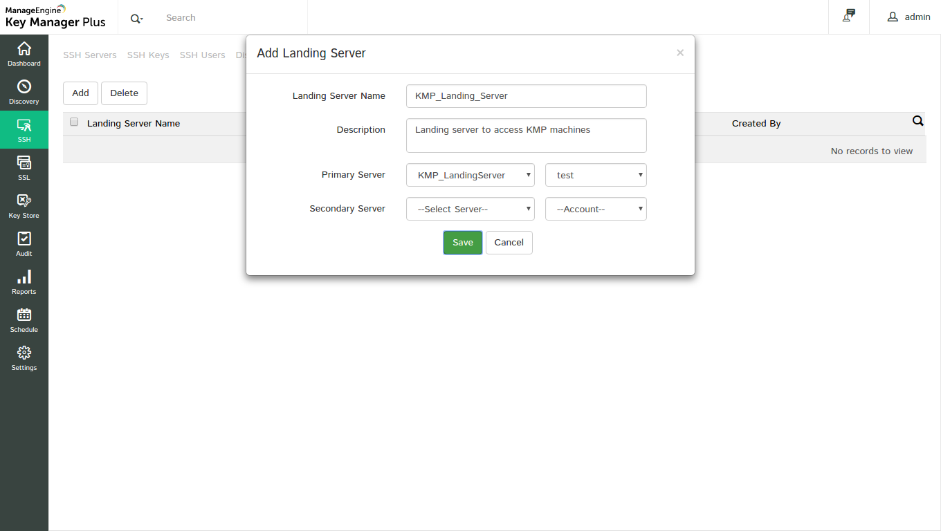Using the landing server arrangement, you can make multiple 'hops' to remotely access an IT equipment in your data center. Configuring landing server for a resource is a one time process. Once you've appropriately configured the landing server for a remote device, Key Manager Plus automatically makes the 'hops' and establishes connection with the target device in a completely automated fashion.