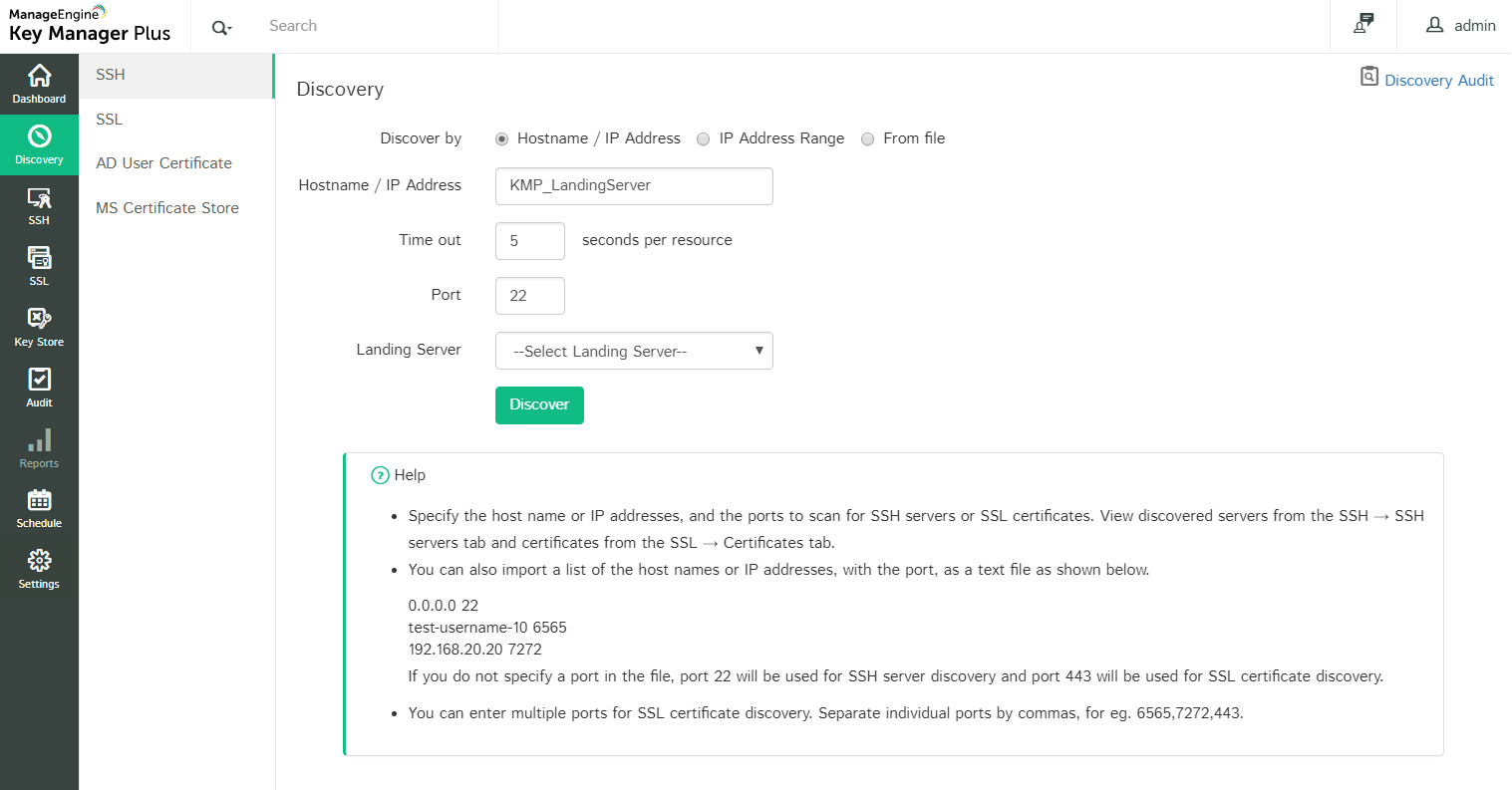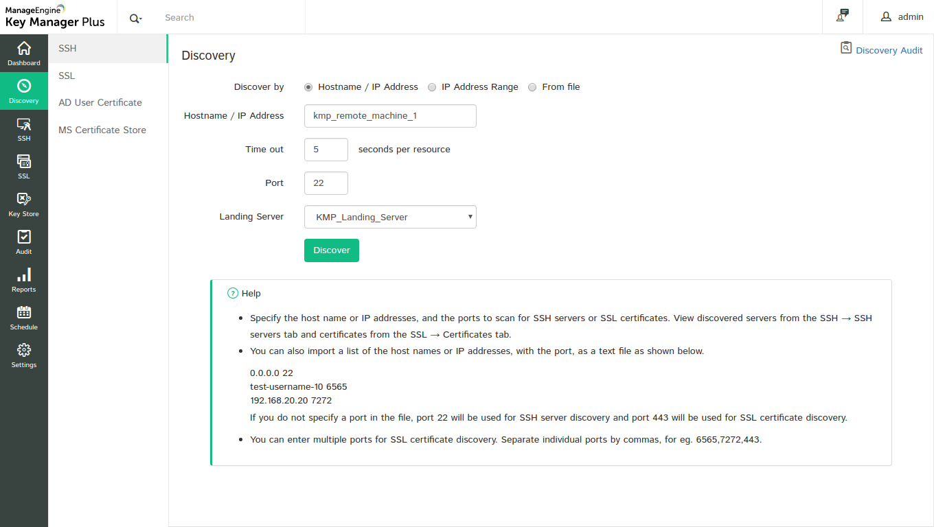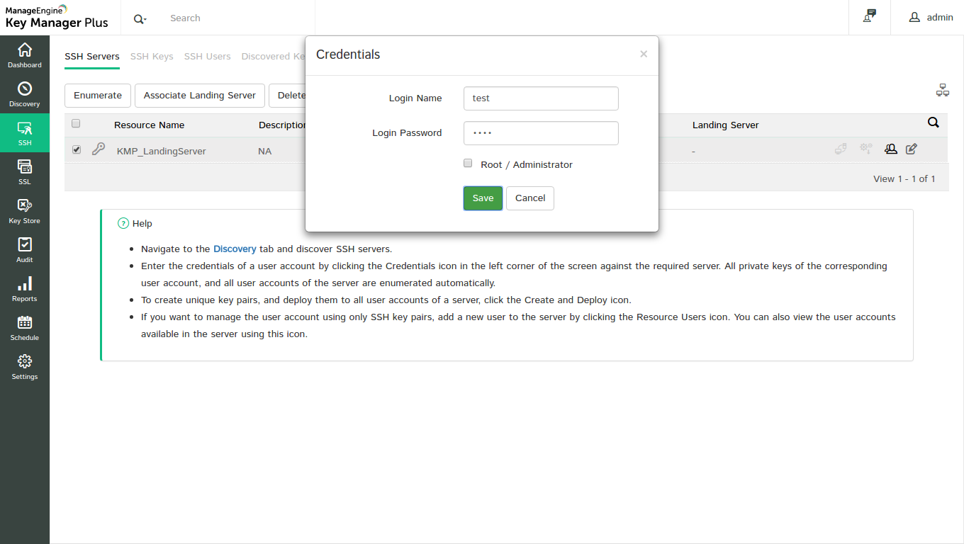 The first step is discovering the resource that has to be configured as a landing server. The resource discovery process is similar to that of normal SSH discovery.