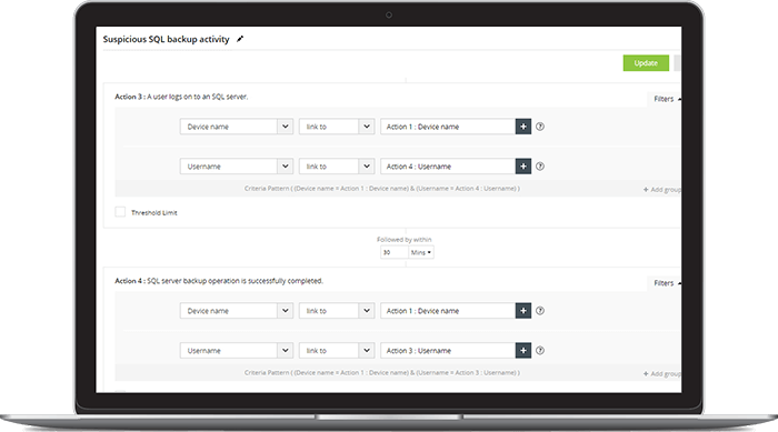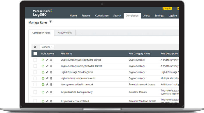 阻止攻击的技巧是检测发出即将发生的攻击的活动模式。这就是Log360的事件关联模块的用武之地。所有的迹象都在那里 - 它们只是遍布整个网络日志 - 而Log360将这些线索串联在一起以识别攻击的指标。通过快速,准确的告警,您可以采取主动立场并防止损坏您的网络数据和资源。这是如何做: