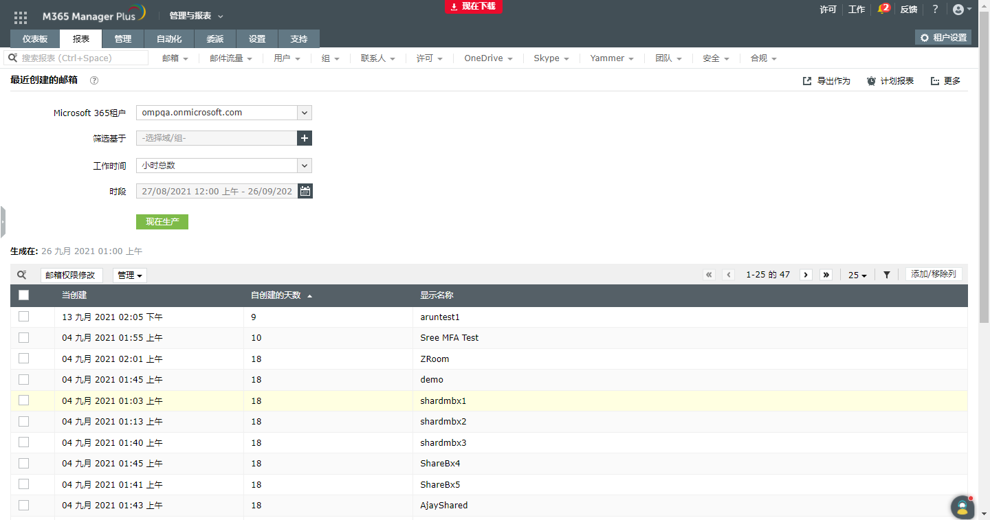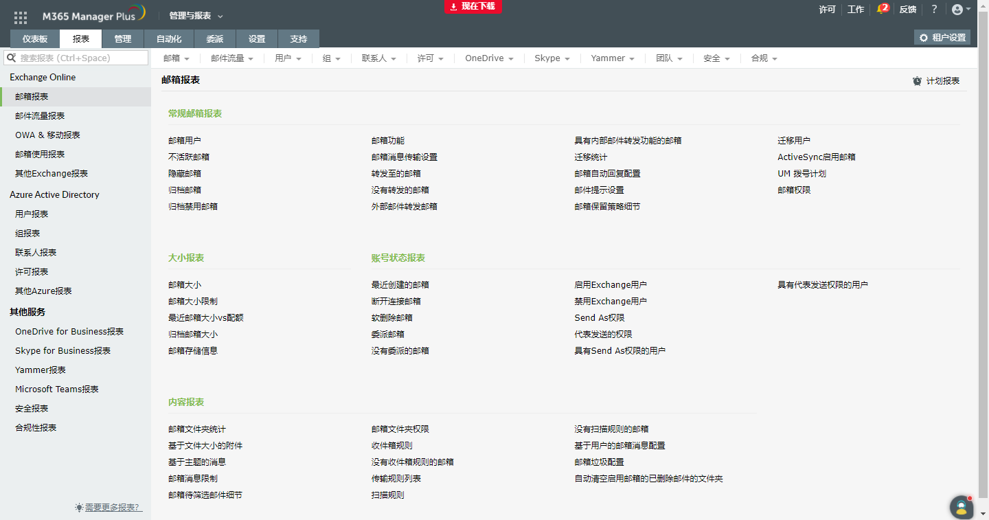 Log360为Microsoft 365提供了200多个预定义报表。它将Exchange Online和Azure Active Directory中的数据合并到详细报表中,这些报表可以多种格式(包括PDF,CSV,XLS和HTML)进行导出和查看。