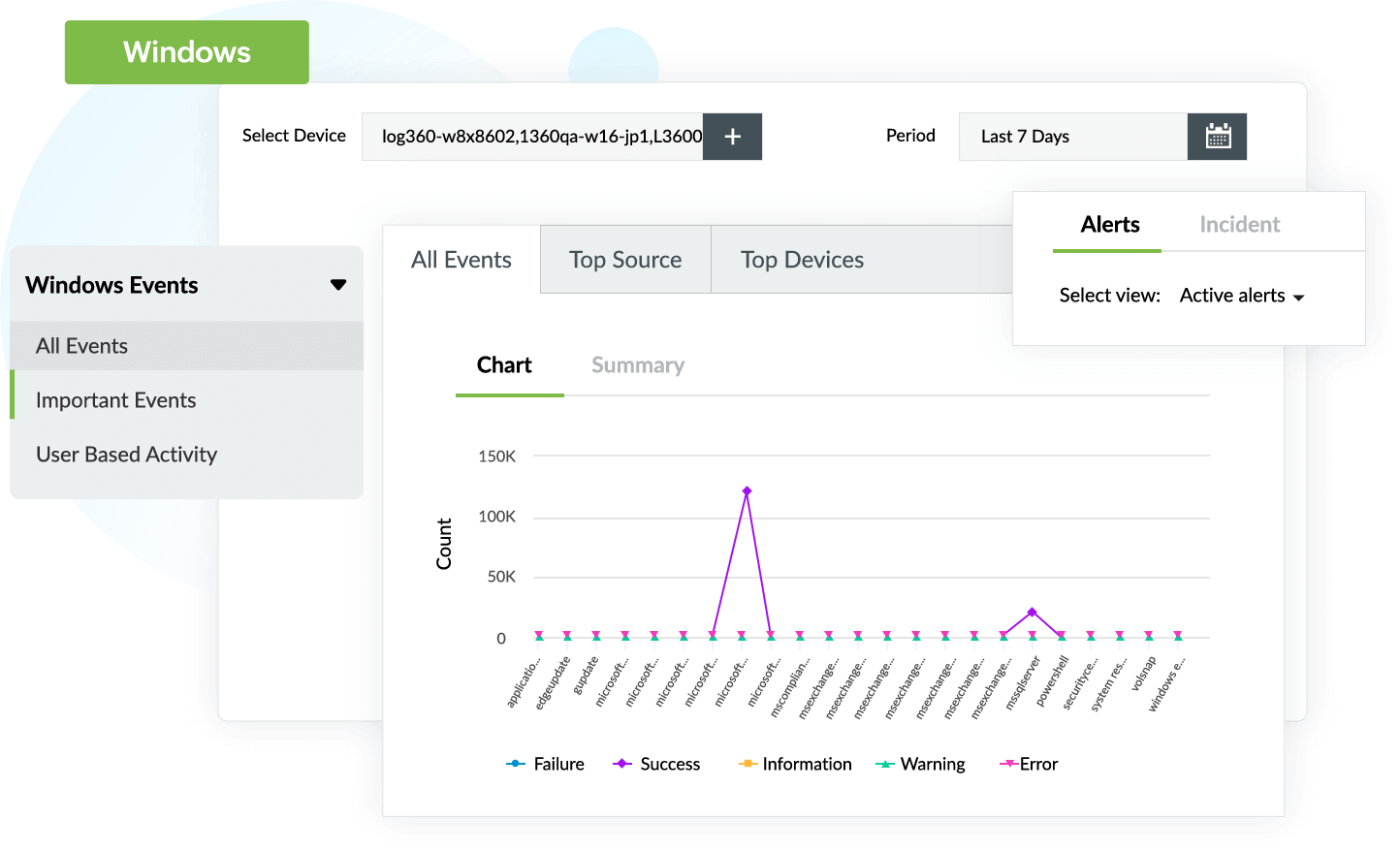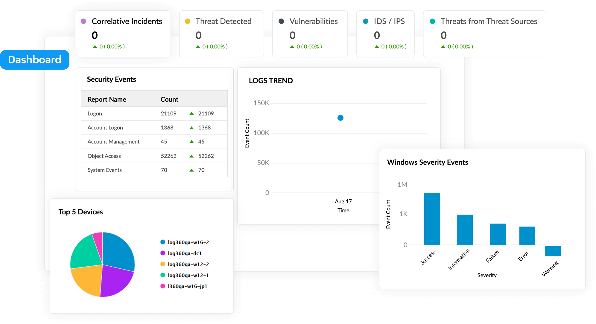 Log360 的事件管理模块,结合基于签名和基于行为的威胁检测技术,使您能够及时检测、跟踪和报表攻击,从而提高检测和响应威胁的平均时间。