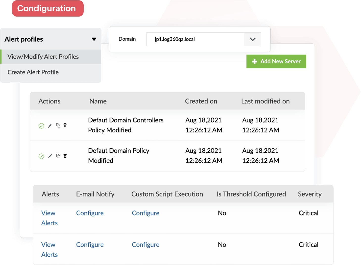 您可以通过单个控制台监控各种平台(例如物理、虚拟、云和远程工作环境)的安全事件。Log360 还带有内置的威胁检测模块,可将恶意 IP 地址列入黑名单。