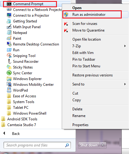 - 对于启用了用户帐户控制的 Windows Server 2008 和更高版本的操作系统,以管理员身份启动命令提示符(右键单击命令提示符并选择以管理员身份运行)