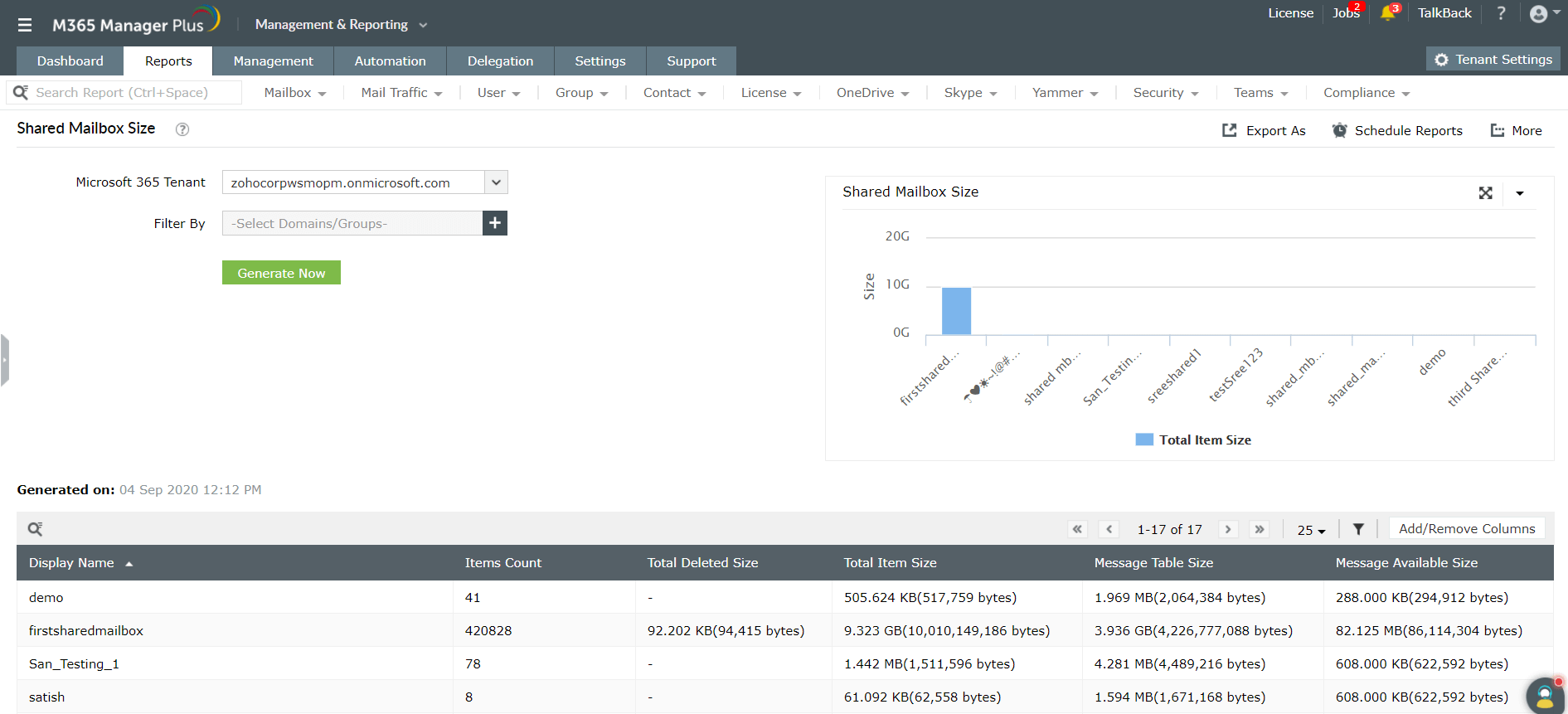 深入了解共享邮箱的使用情况,并提供有关共享邮箱中项目数,这些项目的大小,邮件表大小,已删除总大小等详细信息。