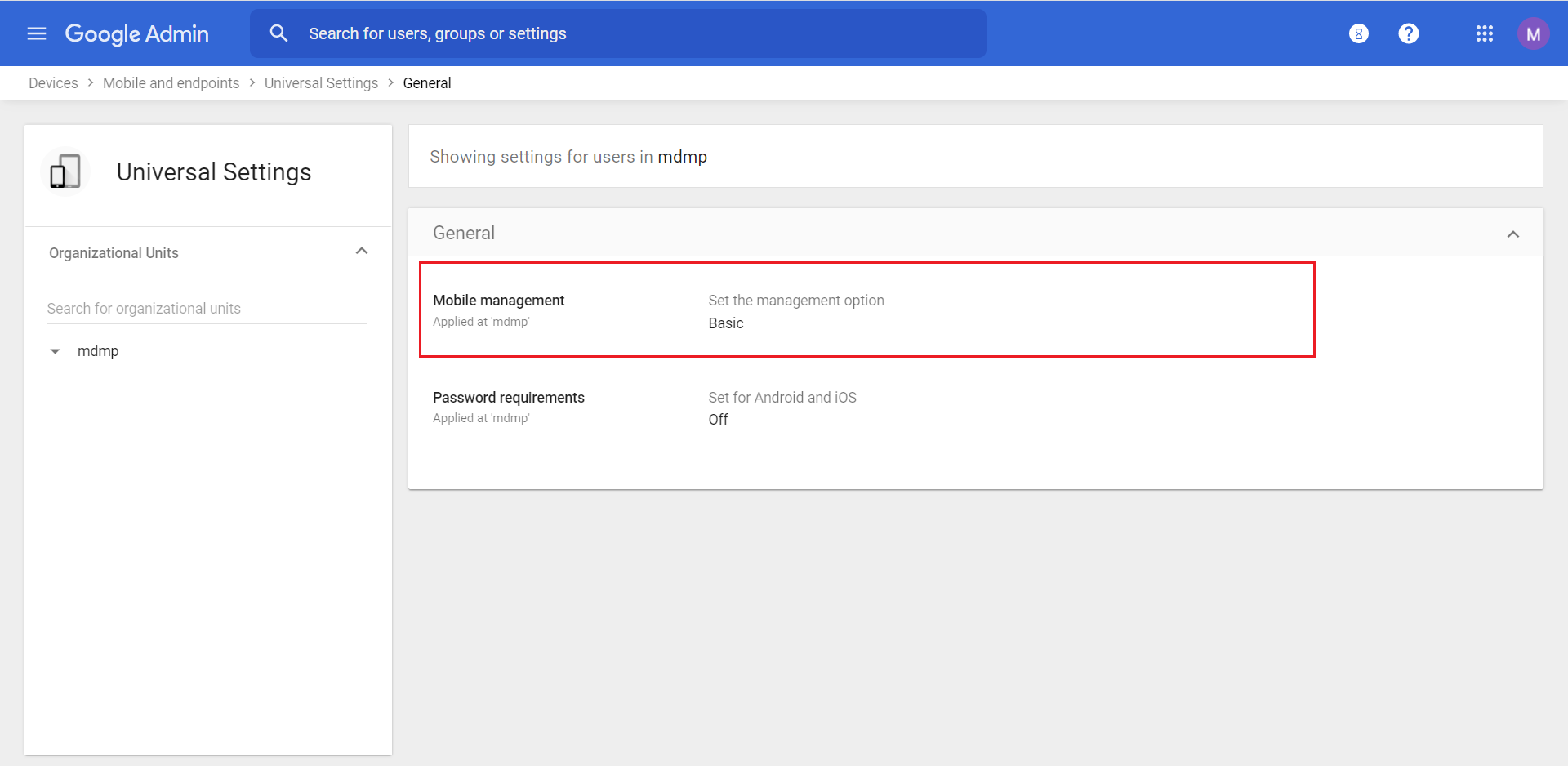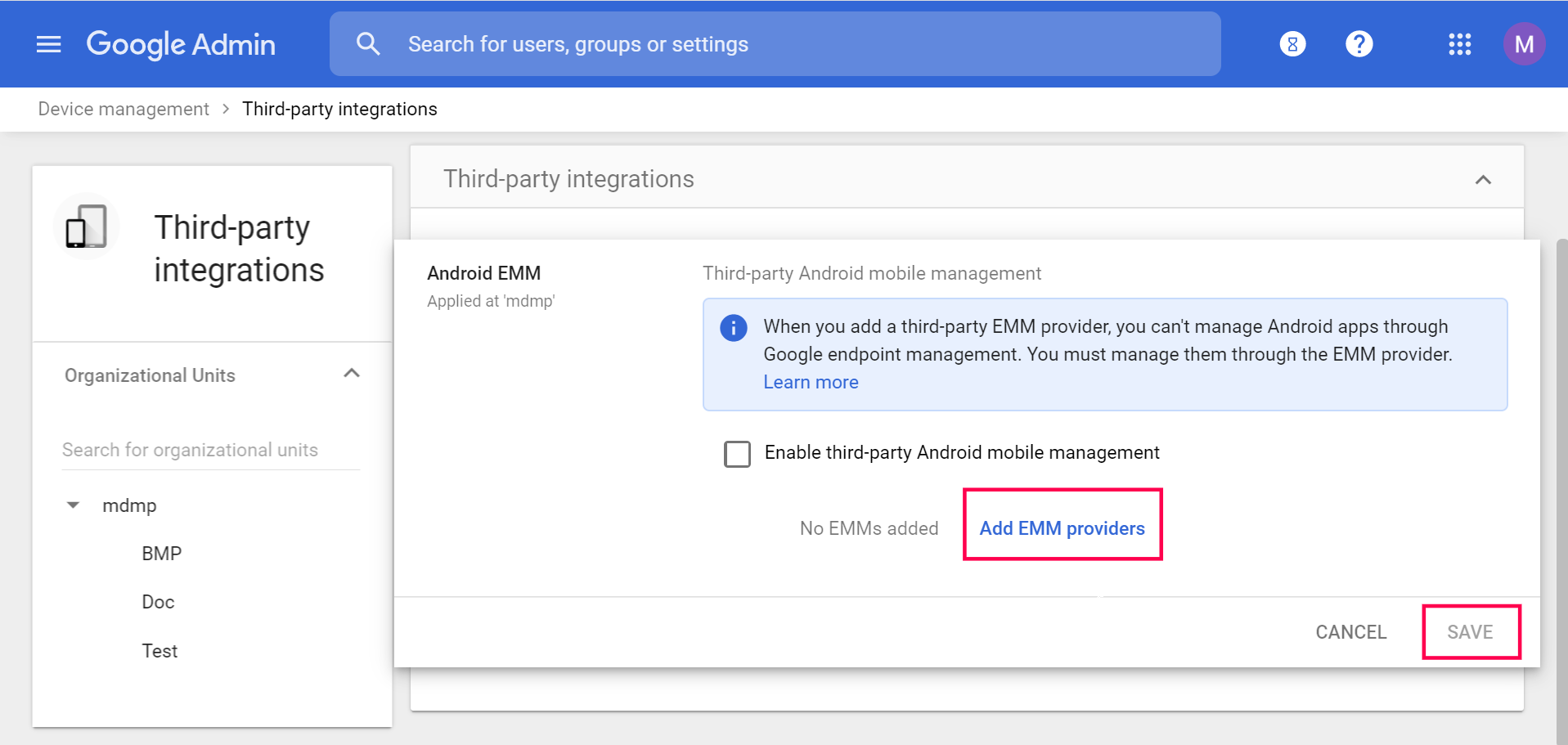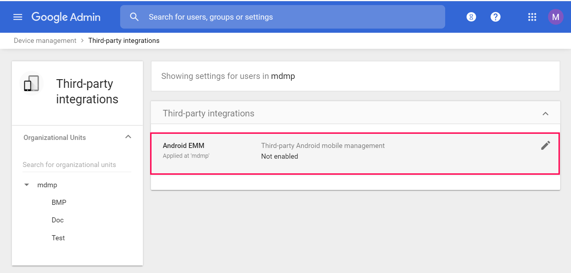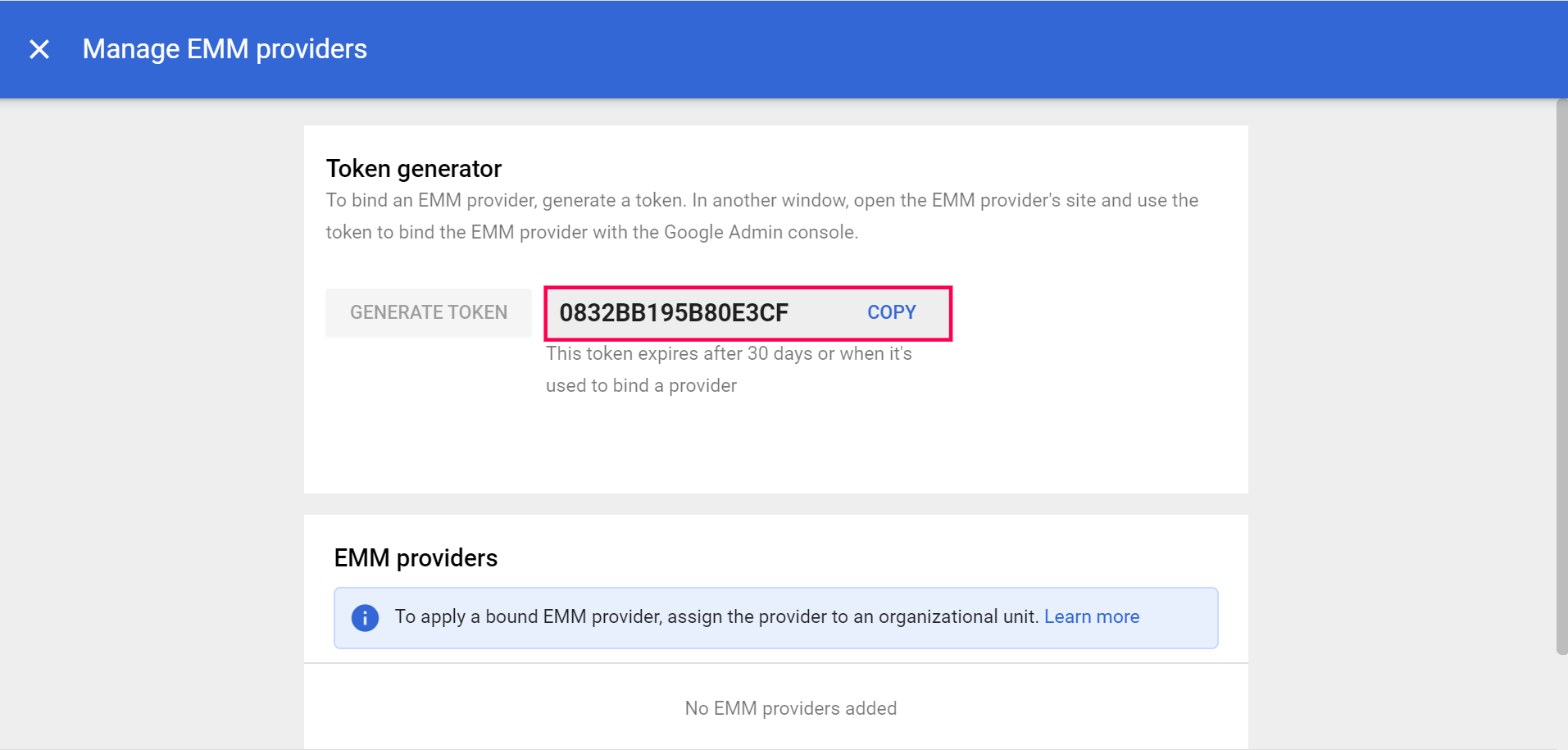注意:每个组织单元都可以使用一个EMM令牌管理设备。