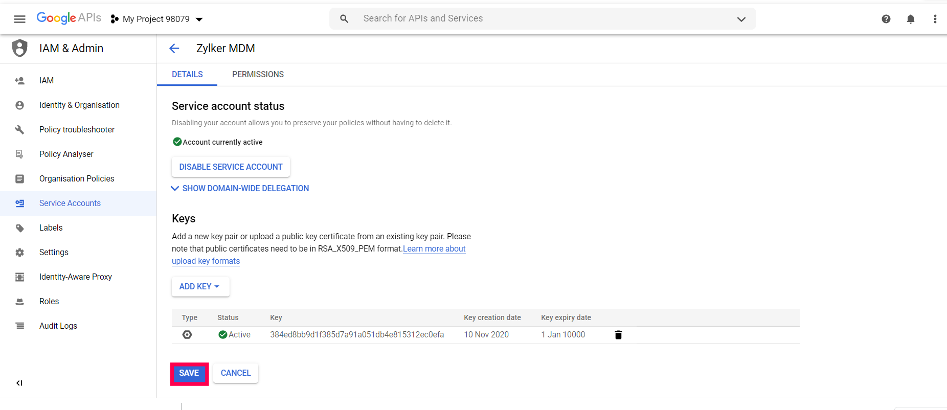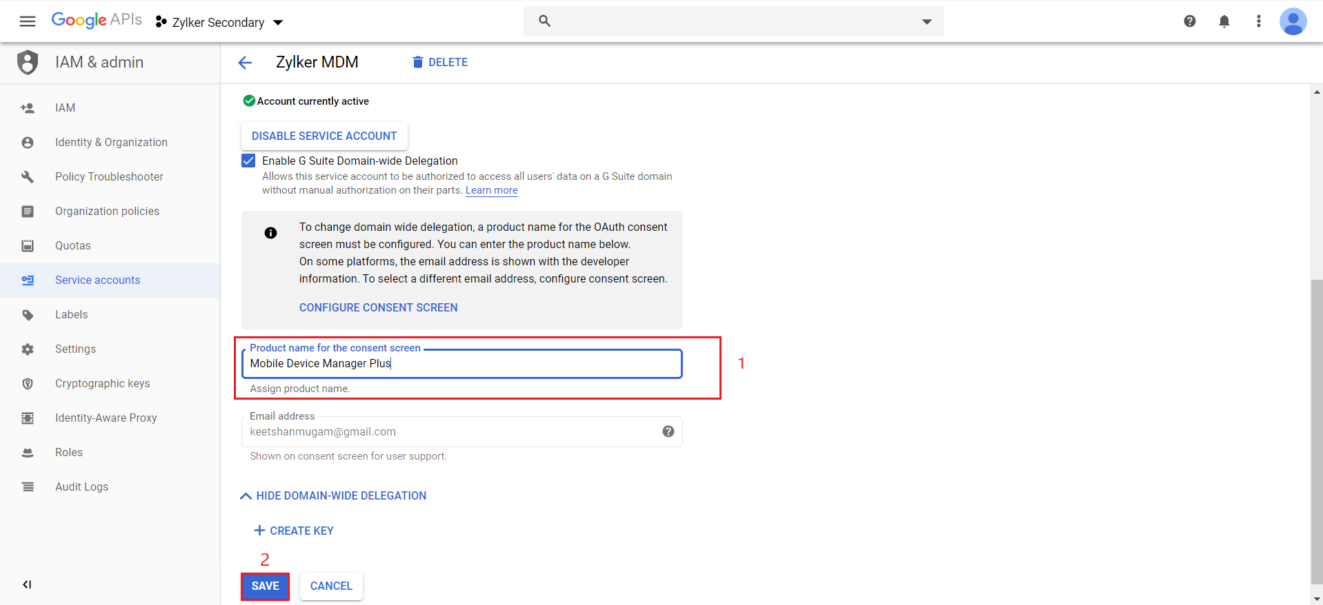 在授权页面的产品名称中,填入 Mobile Device Manager Plus并保存。