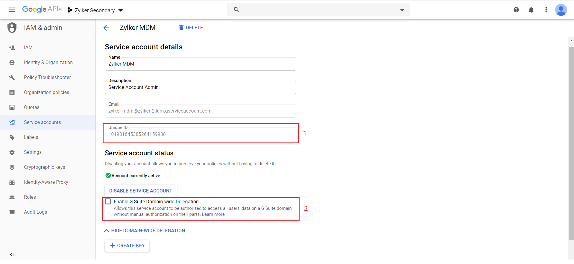 复制唯一ID下的21位数字序列,勾选查看Domain Wide Delegation Client ID。
