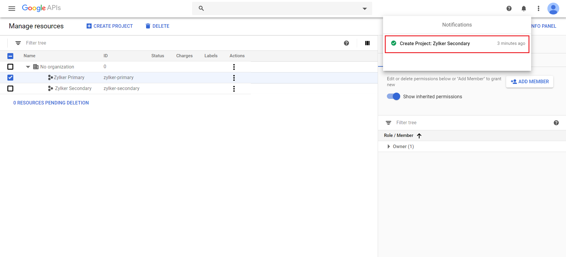 项目创建后,点开通知图标,点击项目创建通知消息。