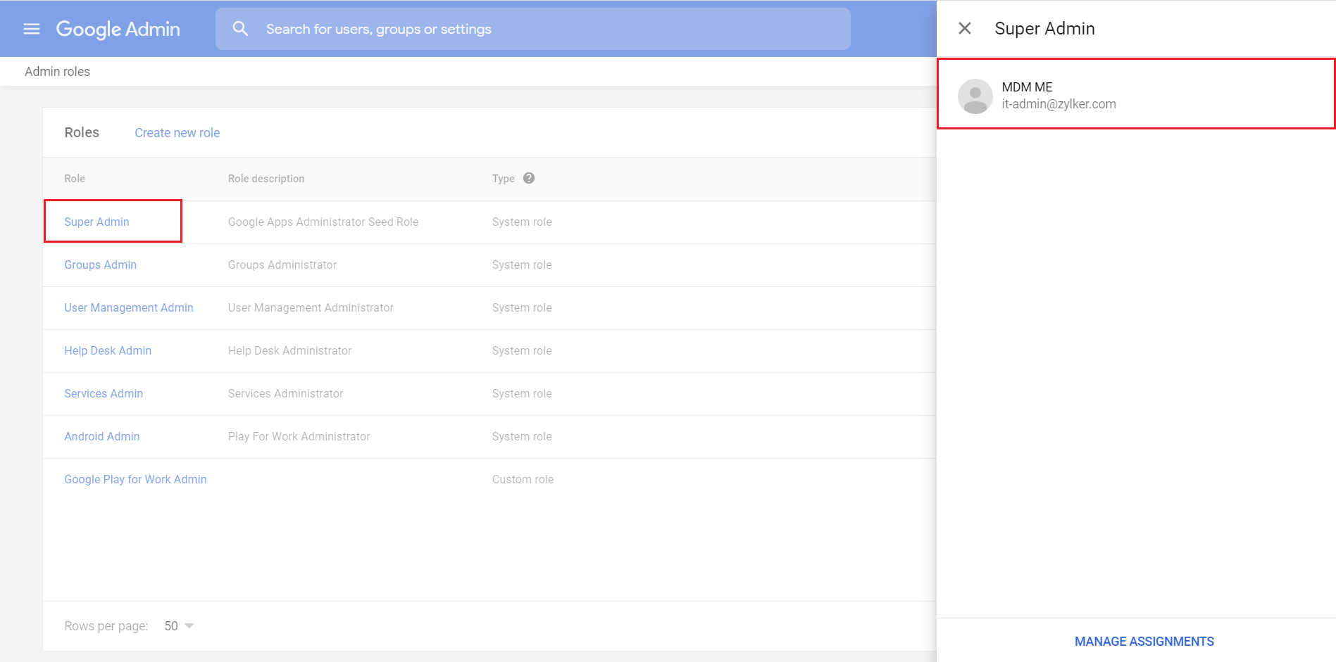 要完成Managed Google Play与MDM的集成,您需要提供一些详细信息,其中一个就是域管理员帐户。查看域管理员账户的步骤如下: