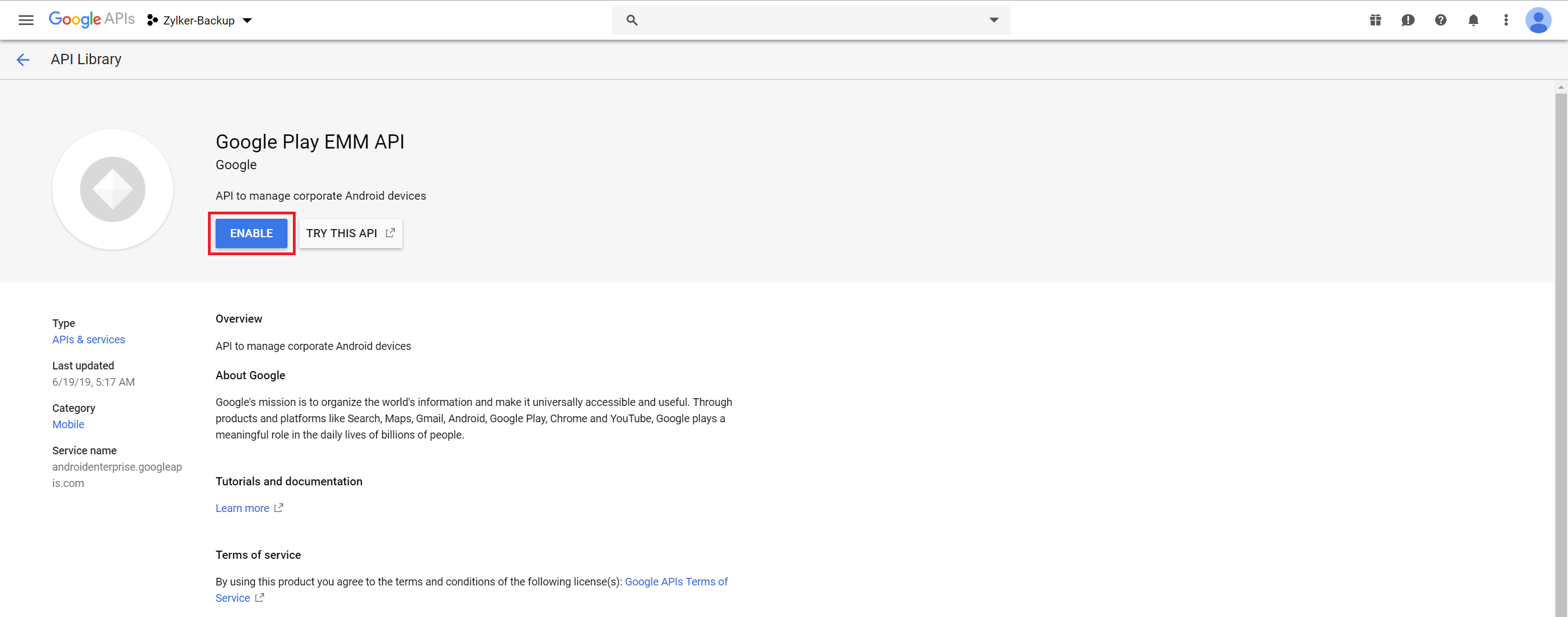 打开Google for Play | Work页面后,请使用未关联任何EMM服务的谷歌账户登录。