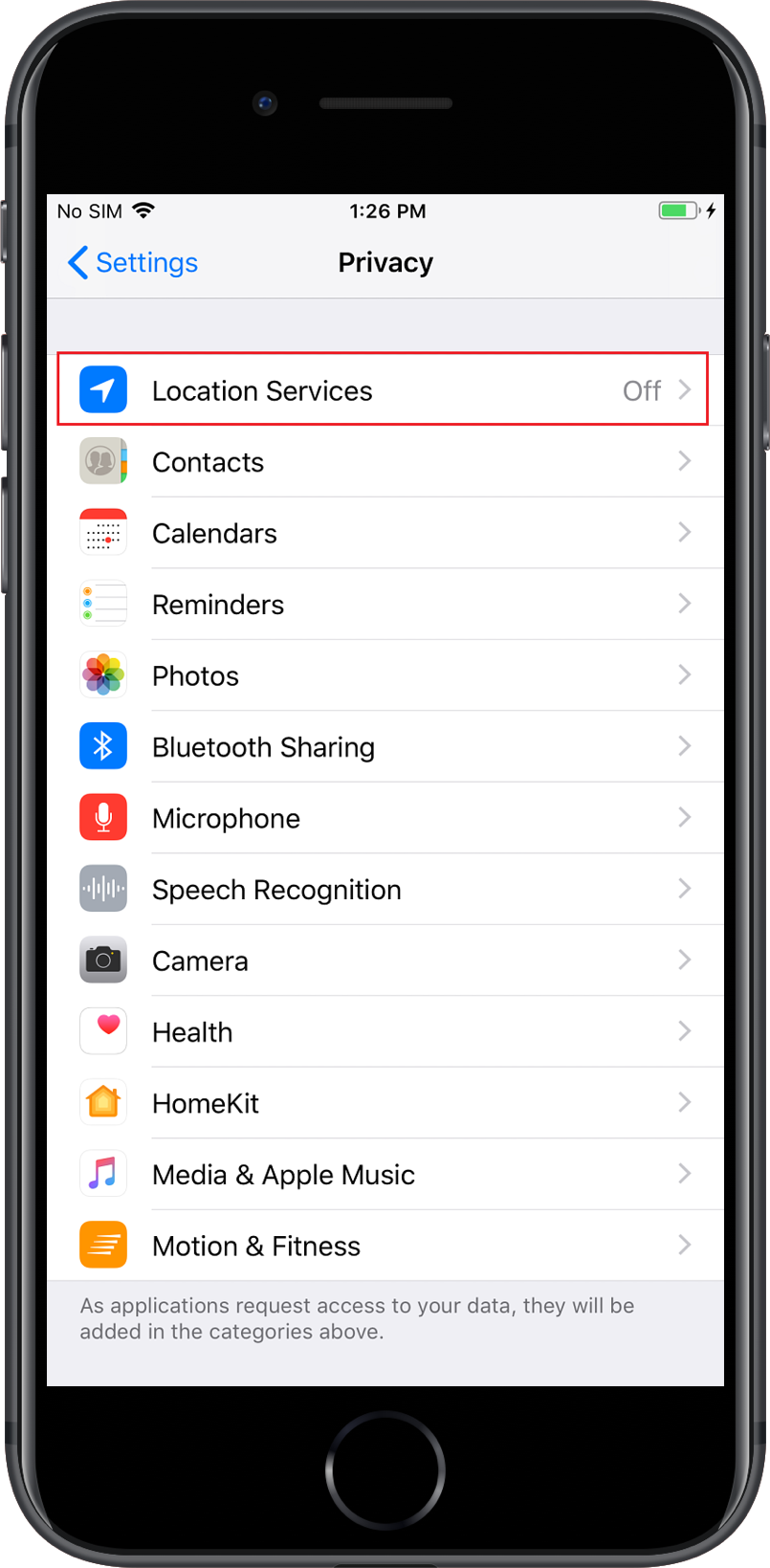 3. 从隐私列表中的应用权限部分下选择位置。