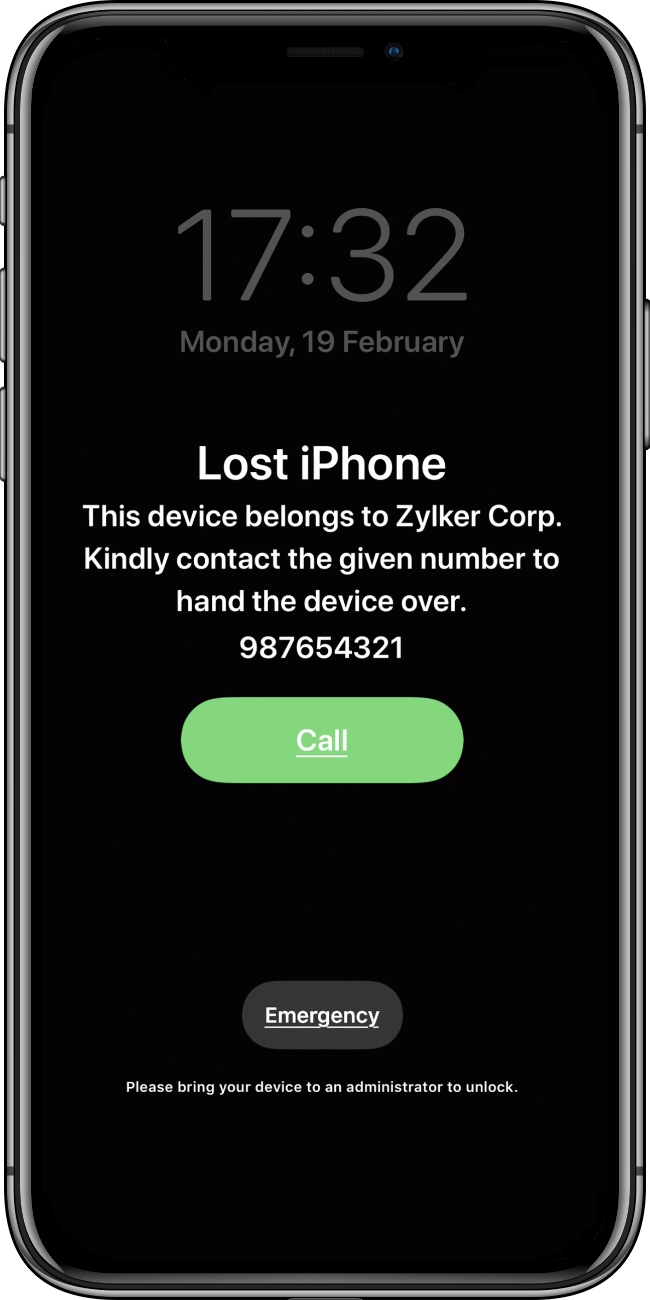 点击动作下的远程锁定。输入要在设备上显示的信息和联系电话。设备上显示的信息如下所示。