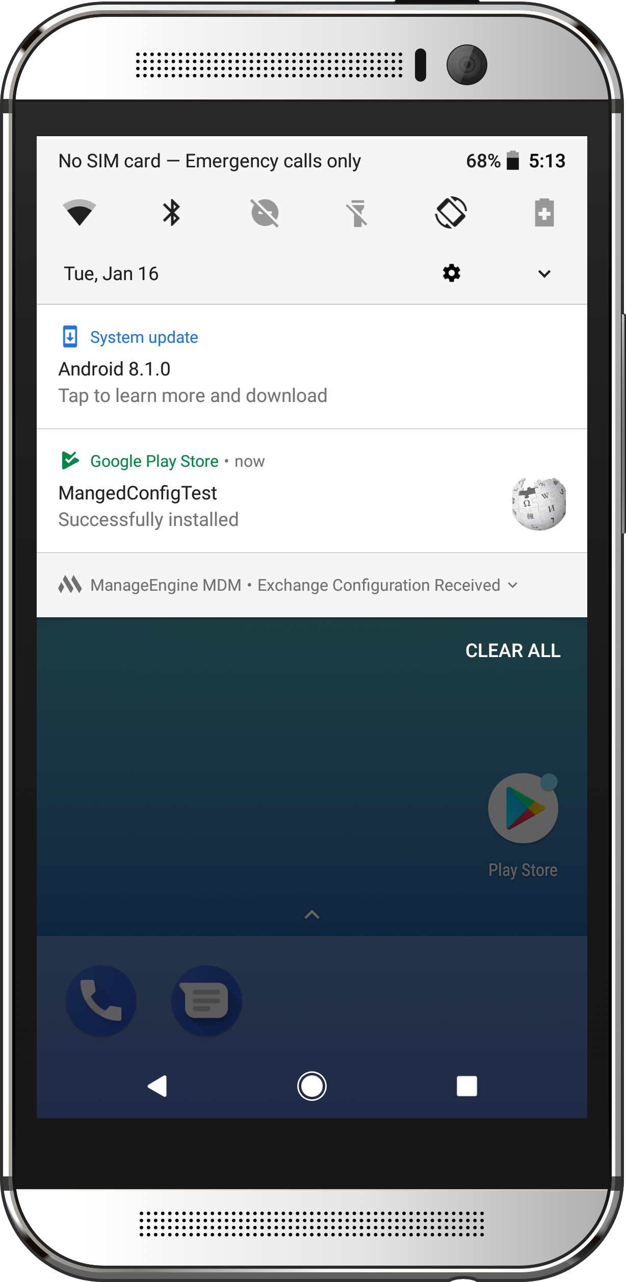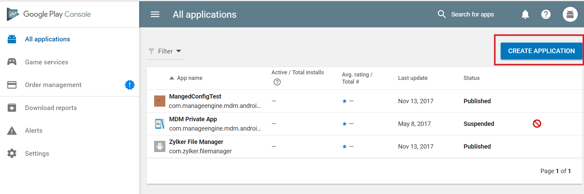 为了使您的企业应用仅可供组织内的用户使用,您可以将它们作为私人应用发布到被管的Google Play上。为此,您需要创建一个Google Play开发人员账户。一次性缴纳登记费,就可以获得该账户的永久许可。此账户提供了正确的管理员权限,可以将私人应用上传并发布到被管的Google Play。这些私人应用使用Google管理控制台或Google Play控制台发布到Play Store,然后可以使用Mobile Device Manager Plus静默分发到您的被管设备。