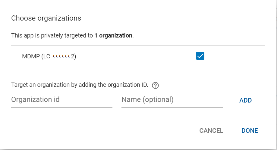 注意:通过重复这些步骤,您可以与多个组织共享您的私人应用。