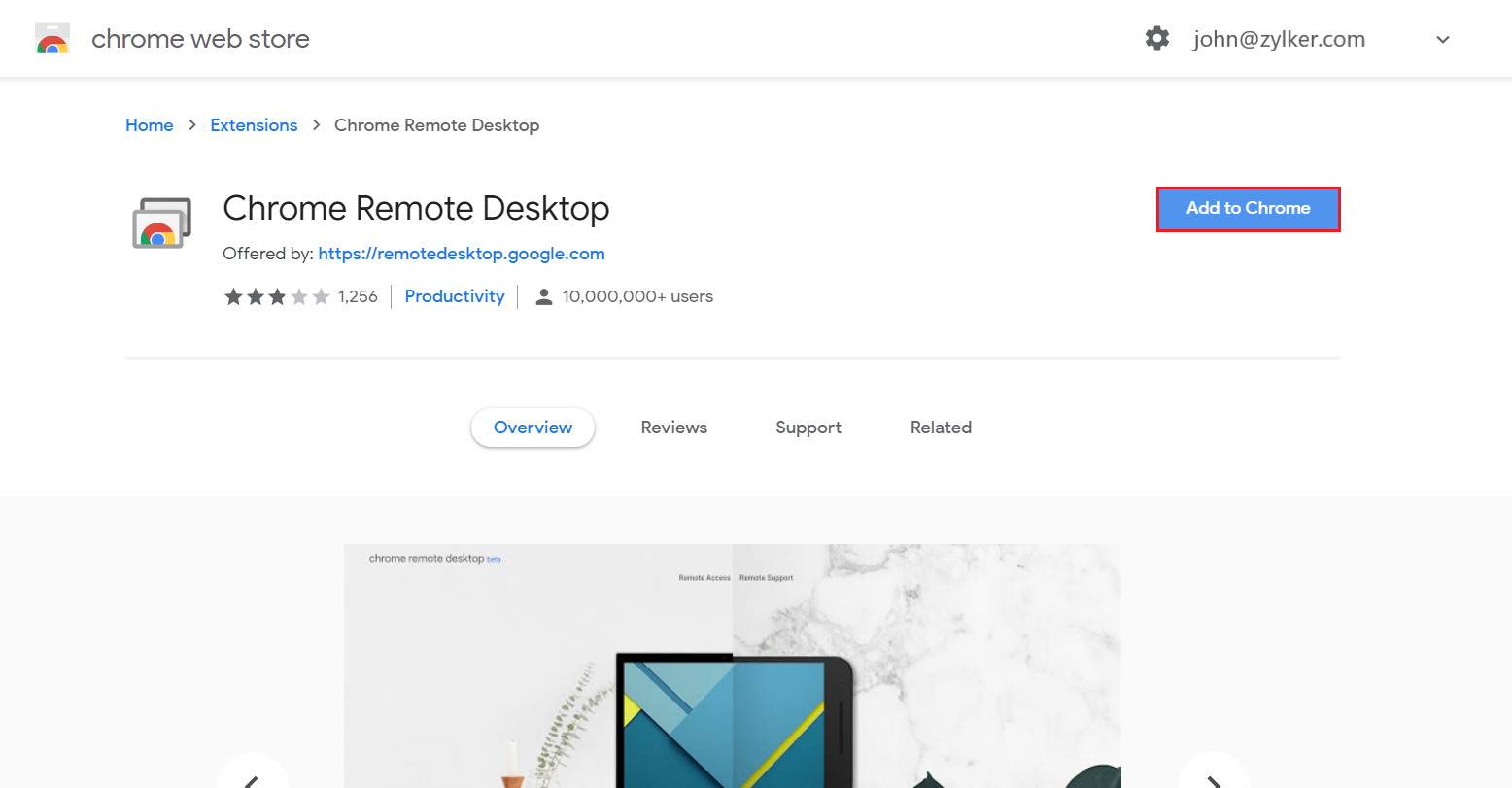 - 将Chrome远程桌面分发到chromebook后,在chrome网上应用店中,用户必须点击Add to Chrome-> Add extension。