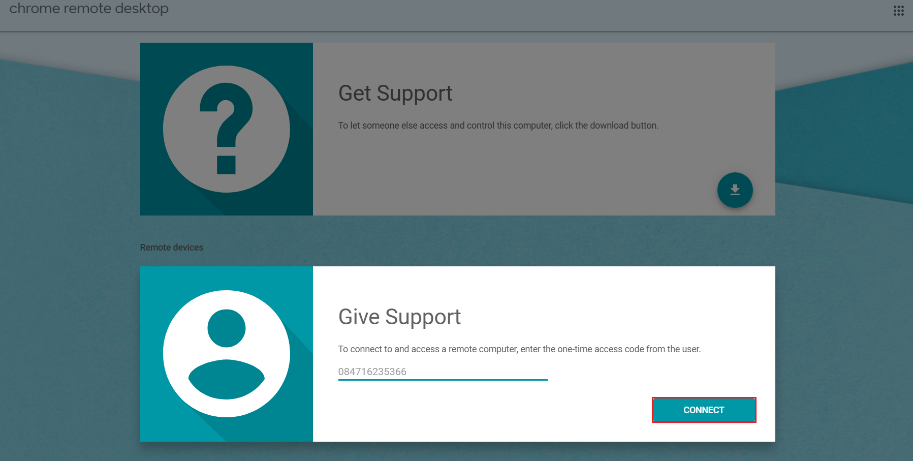 - 在“ 提供支持”下,输入从chromebook生成的代码,然后单击“ 连接”。