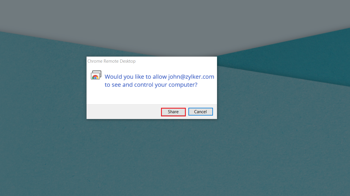 - 用户需要点击chromebook中的共享以启动远程会话。