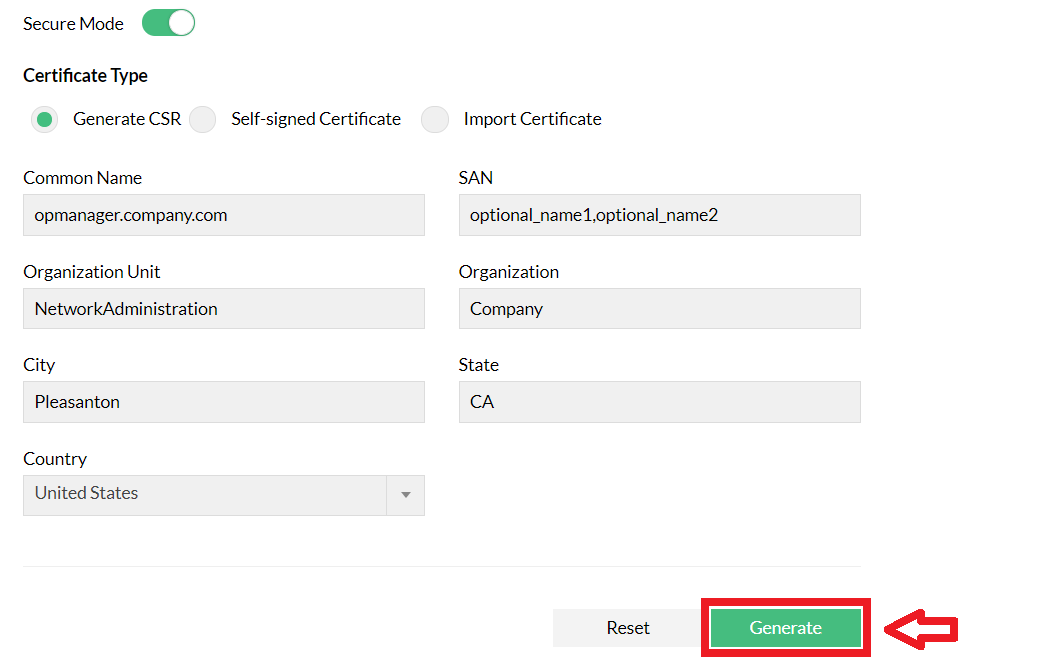 5)点击生成CSR后,您必须为要创建的证书填写一些信息,以便在NCM服务器中使用。